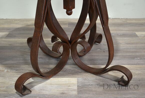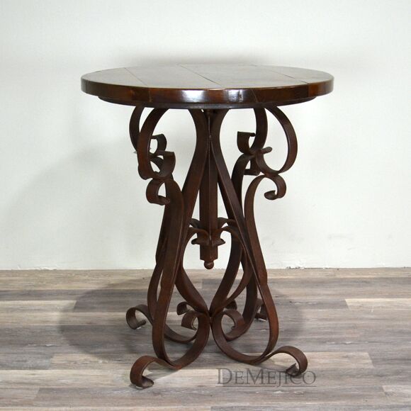 The Altina Spanish Rustic Bar Table is a beautiful bar table featured in our Bar Catalog. Serving as the focal point of this table, rustic-finished wrought iron has been carefully hand forged in an authentic Spanish scroll design. Complimenting this base, planks of solid mesquite wood have been laid in a round top, showcasing the natural knots, stretches and movements of the wood. Add the Altina Bar Table to your restaurant or entertainment space for a classic touch of Spanish style.