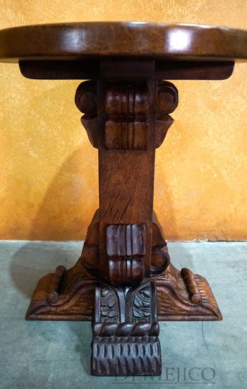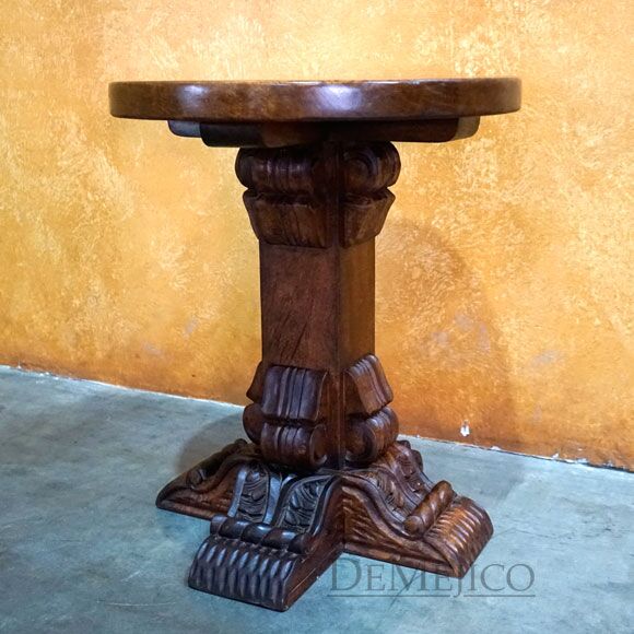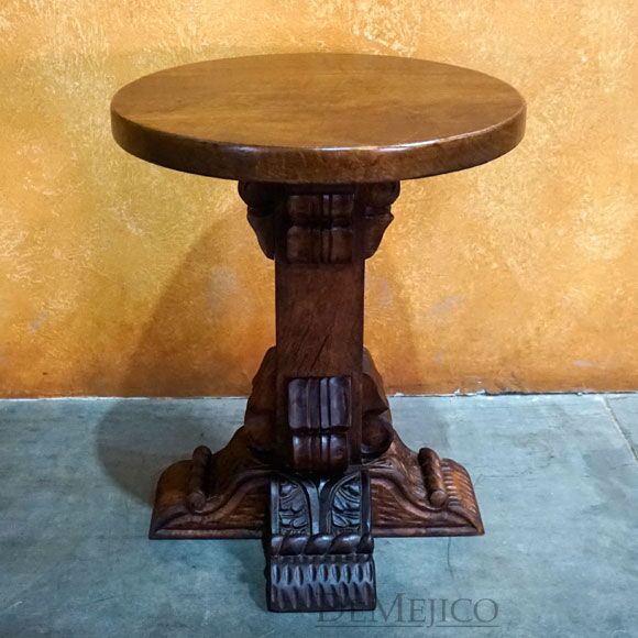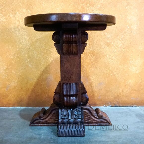 The Armida End Table is a beautiful round Spanish end table featured in our Living Room Catalog. Inspired by our Armida style dining tables, this end table is made from solid aged mesquite wood, and features the same hand carved legs and base. With a smooth and thick top, this carved end table showcases the natural knots, stretches and movements of the mesquite wood. The attention to detail featured on the Armida End Table will bring an authentic Spanish touch to any living room or entertainment space.