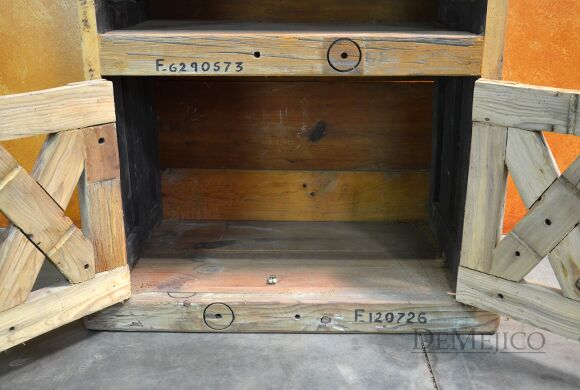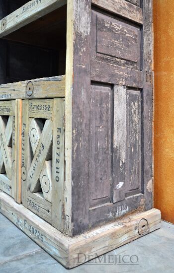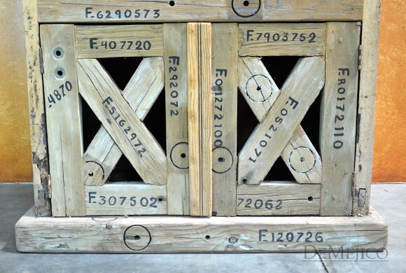 The Aventura Hutch is a fun and attention-grabbing rustic hutch, made from solid old wood, old crates, and with two old doors on each side. While the old doors beautifully showcase natural imperfections attained over the years, the numbers you see are authentic crating numbers, giving the Aventura Hutch its rustic feel. Creating shelving and a two door cabinet space from these old crates, this hutch is not only authentic in style, but functional as well, with just enough space for both storage and/or display. Standing a little over 6ft tall, this old door hutch is perfect for any small to medium sized space.