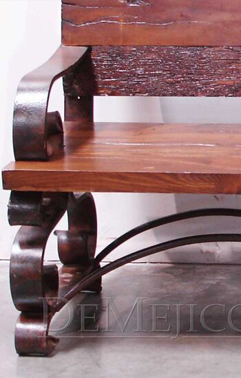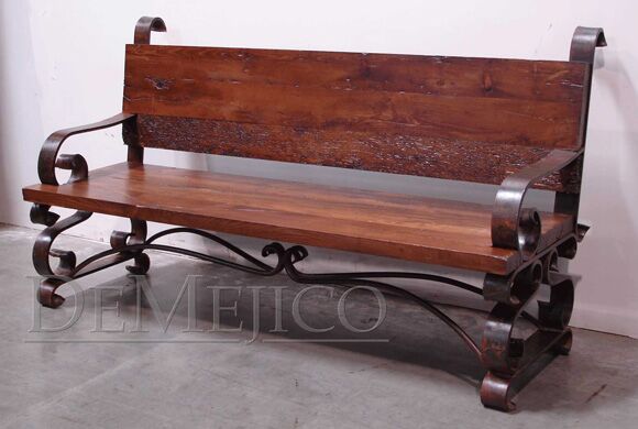 The Banca Espanola is a reclaimed wood bench in a classic Hacienda-style. Featuring the use of reclaimed wood along the bench and back, as well as a hand-distressed wrought iron frame finished in a burnt red stain, these custom benches is available in any size.