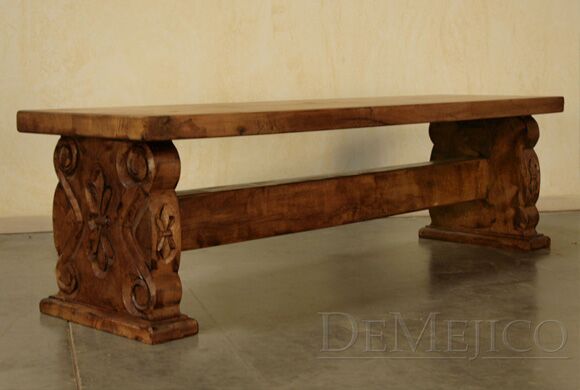 This Spanish style Banca Franco carved table bench can seat up to four people comfortably and features traditional Spanish hand-carved accents. Made from knotty alder wood, the soothing color and delightful proportions make it functional as well as versatile.