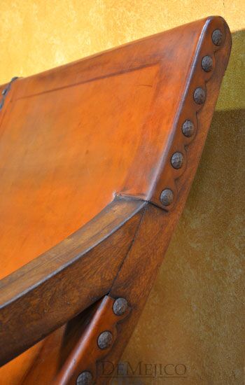 The Banca Nayarit is a unique addition to our Living Room Catalog. Hand crafted from solid mesquite wood and featuring a smooth hand dyed leather, these Spanish benches are both stylish and comfortable. Paying close attention to detail when crafting this leather lounge bench, there are small features such as the scalloped edge leather along the sides, that add small, but beautiful touches. Accented by hand pounded iron clavos, the Banca Nayarit is the perfect Spanish touch to any living room space.
