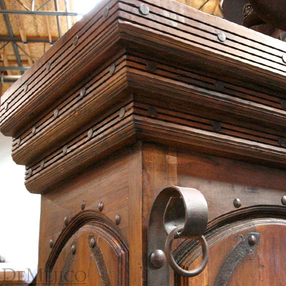 The Old World Bar Leon is one of our biggest bar pieces in our Bar Catalog. This grand, Old World bar is made from solid aged reclaimed wood, and features hand pounded iron clavos all around, as well as hand forged wrought iron. Use this bar in your entertainment or restaurant space to bring in an authentic, Old World Spanish feel.