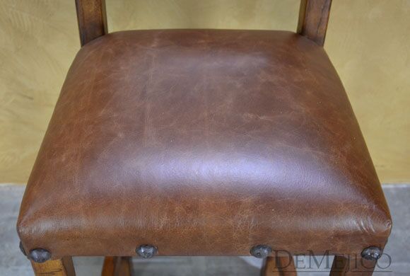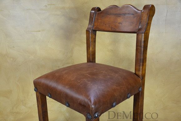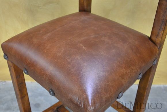 The Circa Barstools are traditional Spanish Colonial restaurant bar stools that feature selected mesquite wood, hand pounded wrought iron clavos, and vintage hand-dyed leather. With a curved and slanted back, the Circa Barstool exhibits old world Spanish influences while providing a comfortable seating, perfect for any restaurant or small dining space.