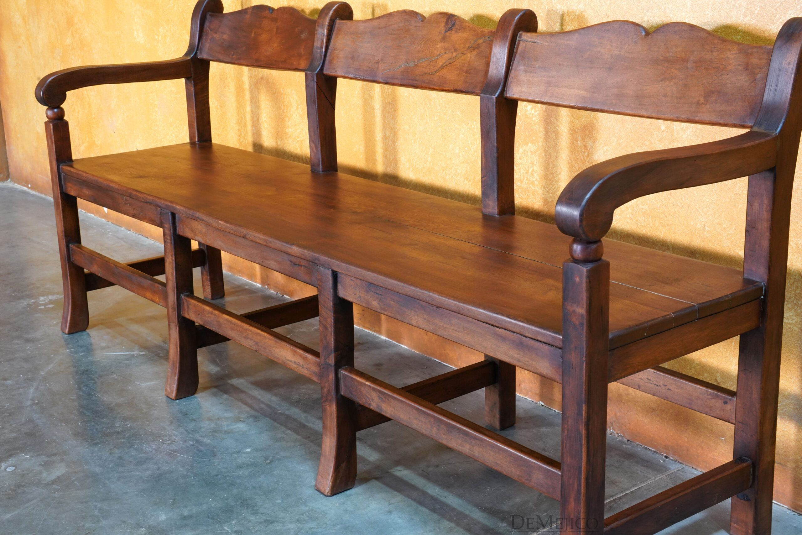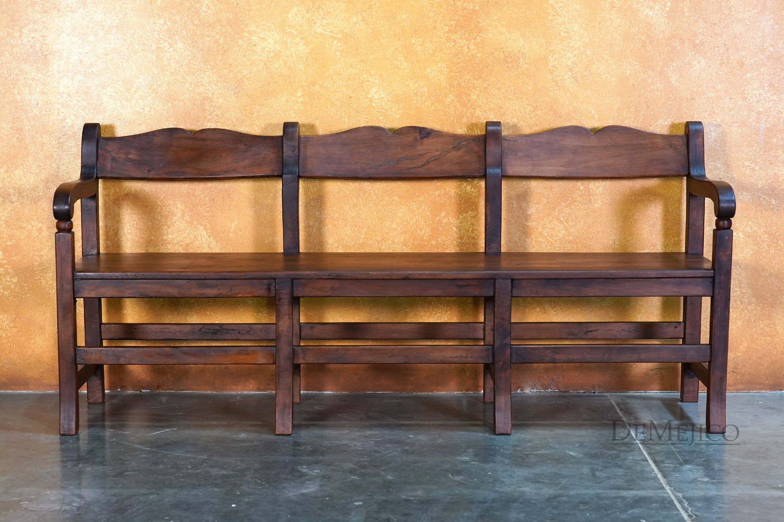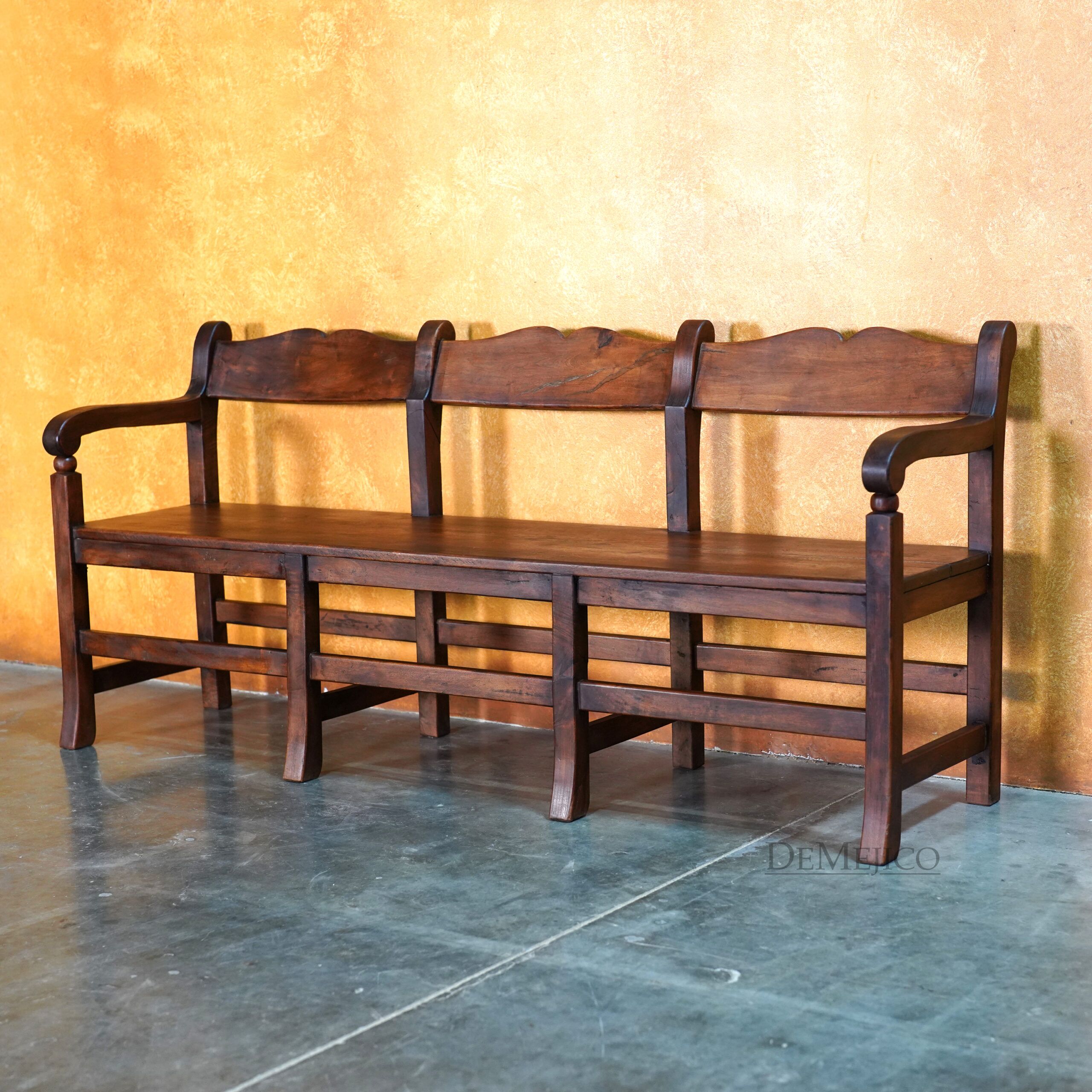 Our Circa Church bench is a freshly designed version of our popular Circa Bench. Custom created for a large church project that we had the pleasure of working on, these Spanish Benches aren’t just for those large crowds; bring the Circa Church Bench into your home, for a traditional Spanish touch in your dining or entertainment space. These mesquite benches are crafted from solid mesquite wood, giving character to the simple lines and contours of this low profile bench.