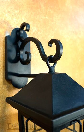 Featured in our Lighting Catalog, the Colgante Wall Mount is a classic lantern style wall mount, with subtle Spanish influences. Giving off a lantern style feel, this wall mount features a pyramid top paired with a cross iron design placed over the four glass plates of the fixture. Finished off with a simple Spanish scroll on a delicate back plate, the Colgante Wall Mount can balance into any Spanish style designed space.