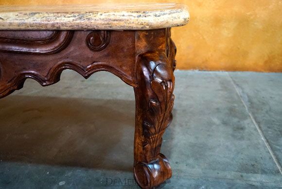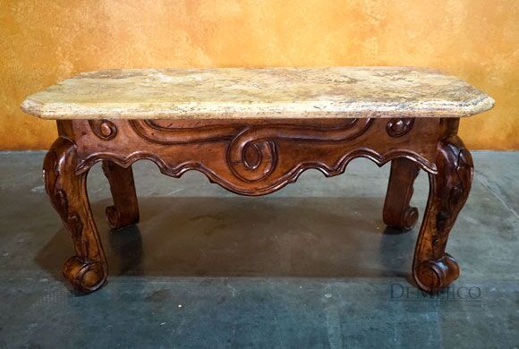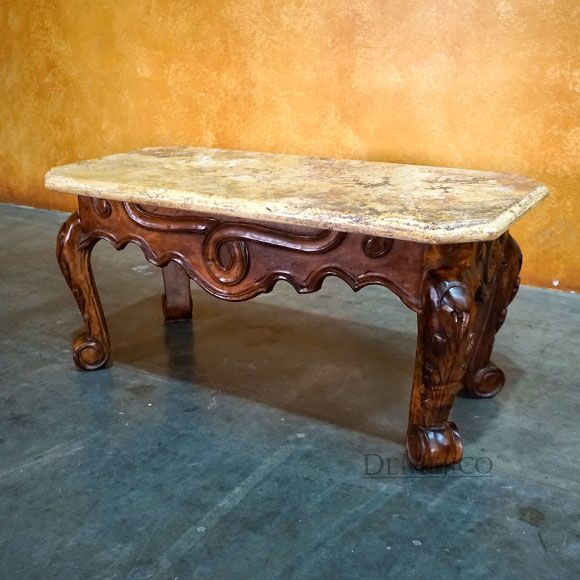 Featured in our Living Room Catalog, the Conquista Spanish Travertine Top Coffee Table is a classic piece made from solid mesquite wood and smooth travertine. Showcasing beautiful hand-carved Conquista designs as a stunning representation of traditional Spanish design, this piece is paired with a travertine top, giving a contemporary flare.