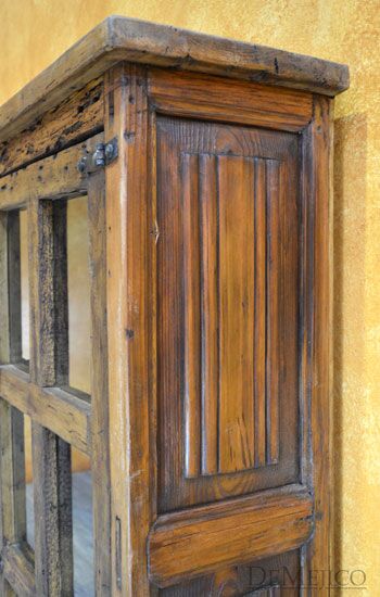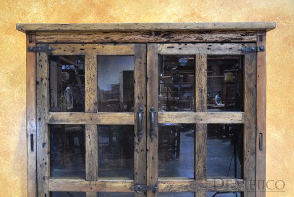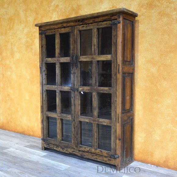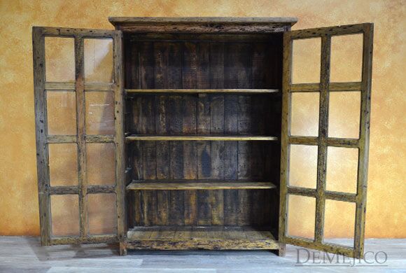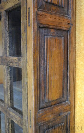 A unique addition to our Dining Room Catalog, the Credenza Antigua is a large modern hutch, with touches of Spanish style. Made from solid reclaimed wood and featuring paneled glass windows, this Spanish hutch stands out among the rest. The two large paneled doors open up to three added shelves, for a great deal of storage/display. With its natural knots and imperfections showcased throughout, the Credenza Antigua is finished off with raised panels on the sides, and hand forged iron hardware. Add this glass panel hutch to any dining or entertainment space for storage or display, in any Spanish style home.