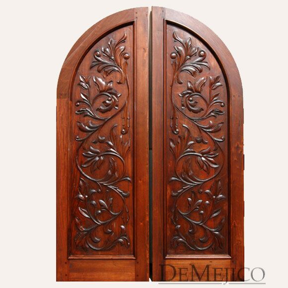 A beautiful pair of rustic carved doors, the Double Puerta Floral is sure to grab the attention of your guests. Made from solid knotty alder wood, these double doors feature a full Spanish arch, and intricate hand carved leaf and vine detailing.