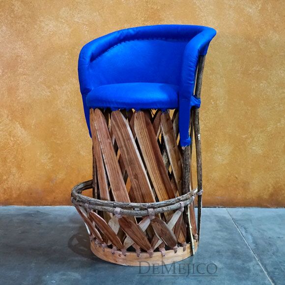 The Equipal Barstool Azul is a unique twist on the Traditional Equipal Chair. Following the classic Santa Fe style design from which it comes, the seat of this Spanish barstool is made with a soft hand-stitched leather hide, while the base features that special cross-laced cut from cured pine wood. Finished off with a curved wood footrest, the Equipal Barstool Azul is ready for any restaurant, bar or entertainment space.