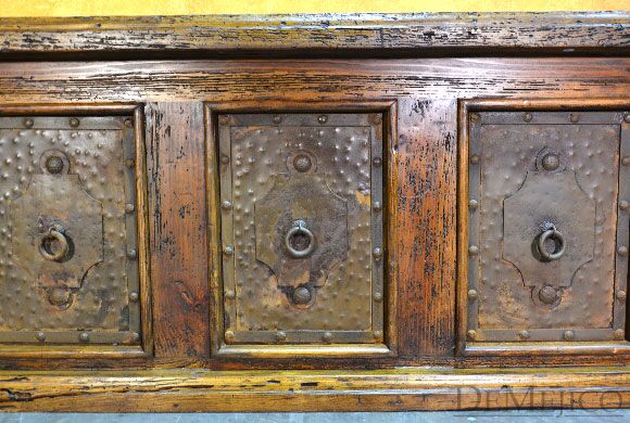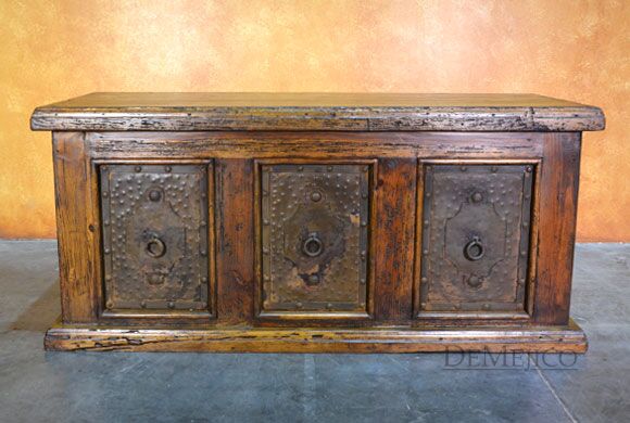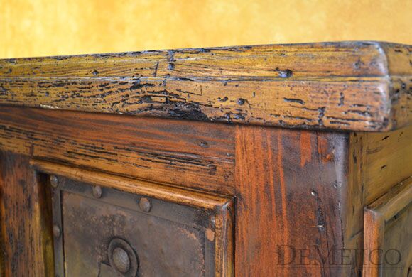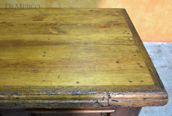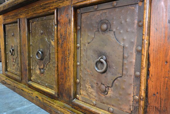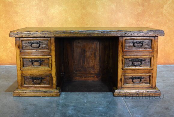 The Escritorio Antigua is a beautiful and unique, custom reclaimed wood desk featured in our Office Catalog. Made from reclaimed wood, and featuring natural and rustic Patina copper panels, this desk is an eye-catching piece that represents authentic Spanish style. Form and functionality are key essentials in the design of this desk, so included are six drawers for storage, a pull out shelf for your keyboard, and a smooth top for working. To complete this reclaimed wood desk, hand forged iron hardware and pounded clavos were added to contrast the piece. Ask us how we can customize a desk for your office or workspace!