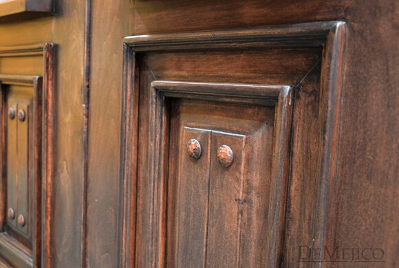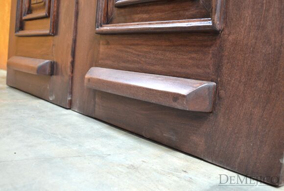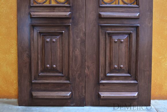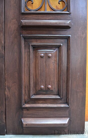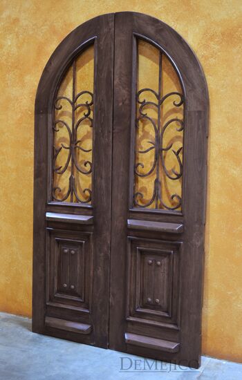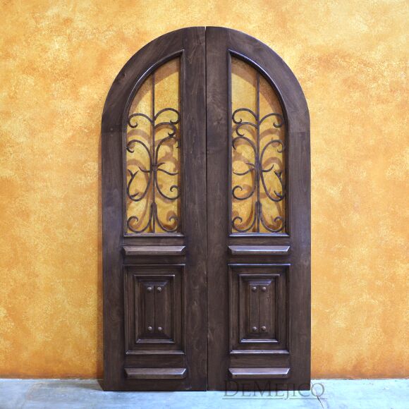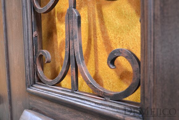 The Florentino Wine Door set is a pair of beautiful, Spanish interior doors featured in our Door Catalog. These double doors feature a full Spanish arch with a raised panel accented with hand pounded iron clavos. At the focal point, these doors carry a stunning presence with traditional hand forged wrought iron grilles.