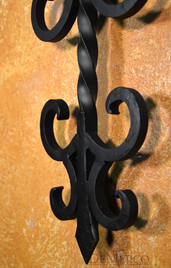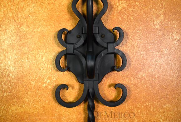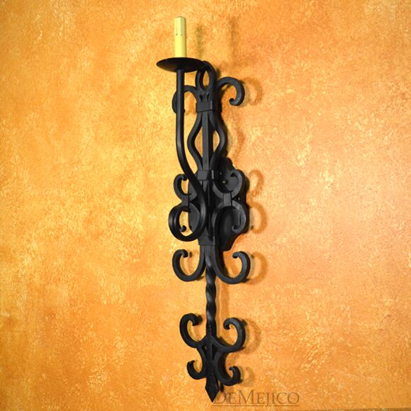 The Forja Sconce is a beautifully scrolled wall sconce, that authentically showcases Spanish Style scrollwork. Sitting on a simple backplate and under a single imitation candle, the Forja Sconce displays intricate scrollwork on its long stem. With an added touch of twisted iron, this Spanish sconce it fit for any Spanish style interior space.
