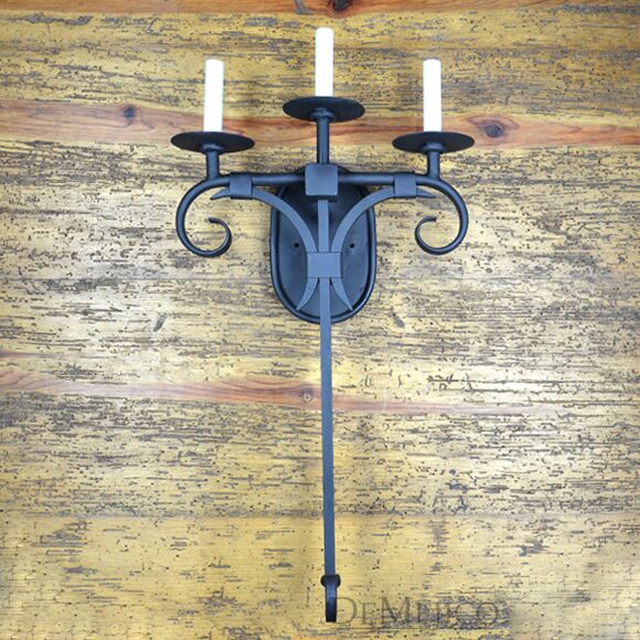 Featured in our Lighting Catalog, the Hacienda Triple Sconce is a simple triple candle wall sconce featuring three imitation candles with dripping wax. With a lightly rusted finish, the Hacienda Triple Sconce features classic Spanish scrollwork, held up by an oval backplate. Fit for any Mediterranean or Old World style home, this triple candle wall sconce will bring a simple Spanish touch to any interior space.