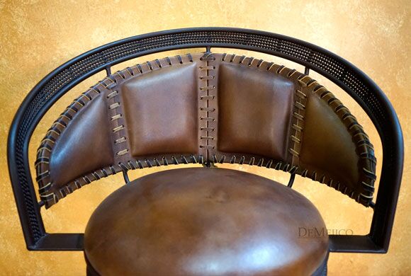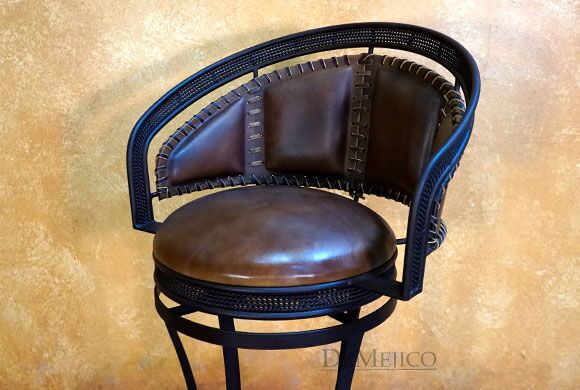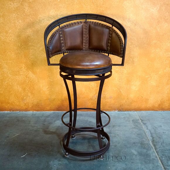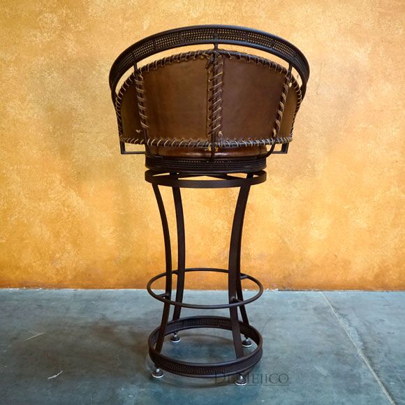 The Iron Equipal Barstool is a classic Spanish barstool made from hand-forged wrought iron, featuring a hand-stitched, vintage leather seat and backrest. Following the style of traditional equipal chairs, the beautiful arch and curves showcased in the wrought iron give this barstool a classy Spanish flair, without being too eccentric. With an iron footrest and ball-bearing swivel action, this swivel barstool is perfect for your lounge or entertainment space, as it brings in both style and function.