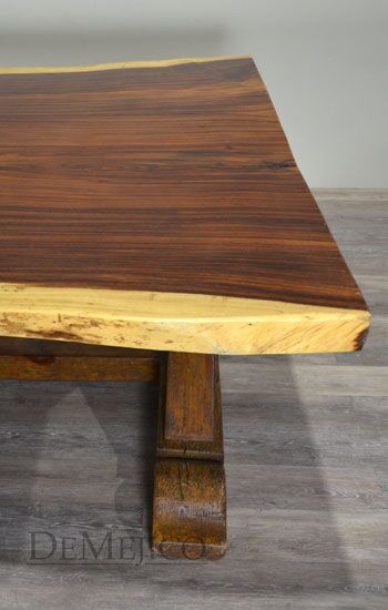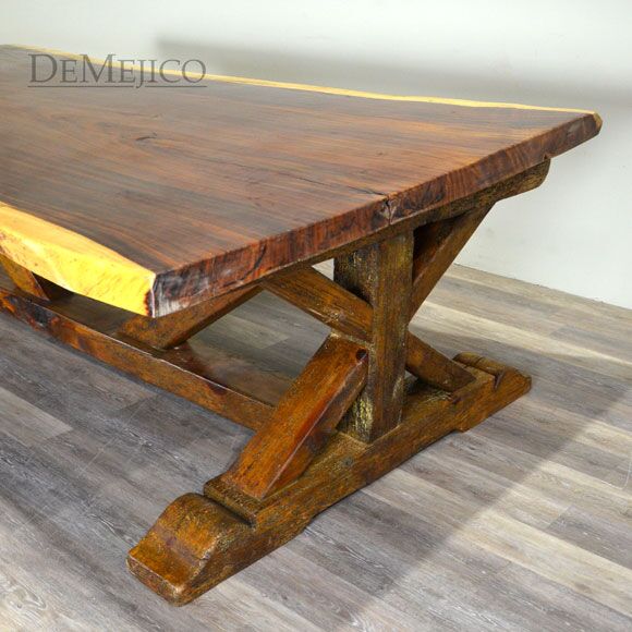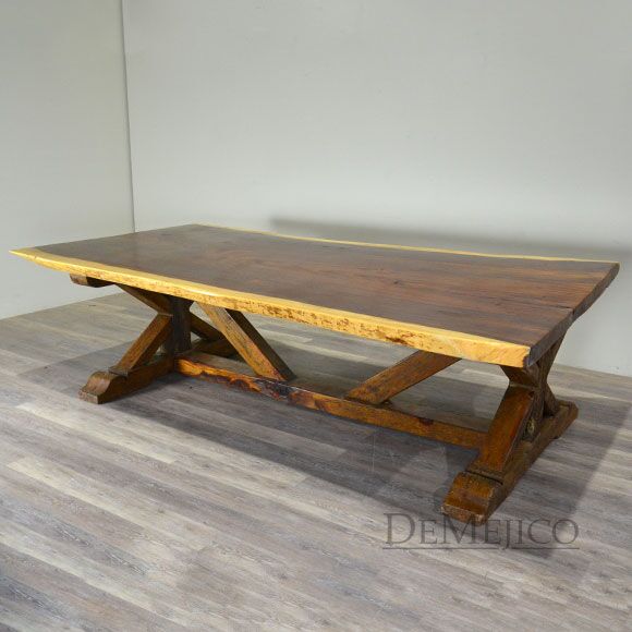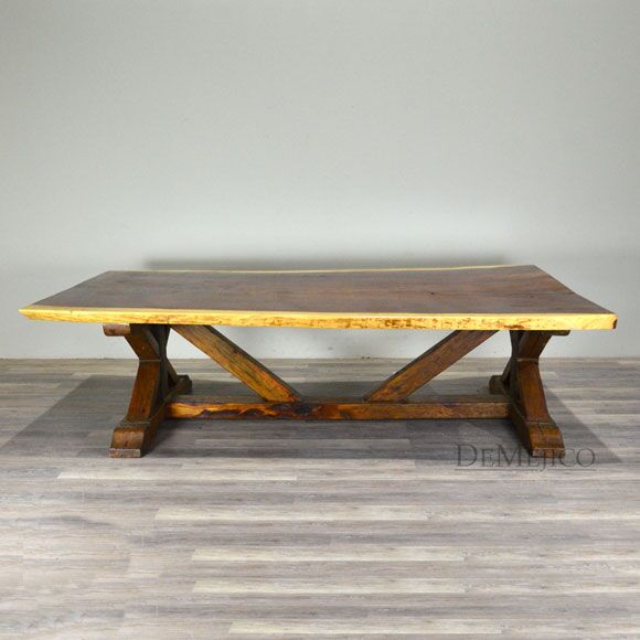 A unique addition to our Dining Room Catalog, the Live Edge Barn Table is a freshly designed piece, taking inspiration from barn style dining tables. Grabbing your attention, a top of smooth, Parota wood is showcased in its natural, live edge state. Beautifully showcasing the knots and stretches, this live edge table top is paired with a unique, reclaimed wood base, showing off X-shaped legs with a matching trestle. Add the Live Edge Barn Table to any dining or entertainment space for a custom and unique touch.