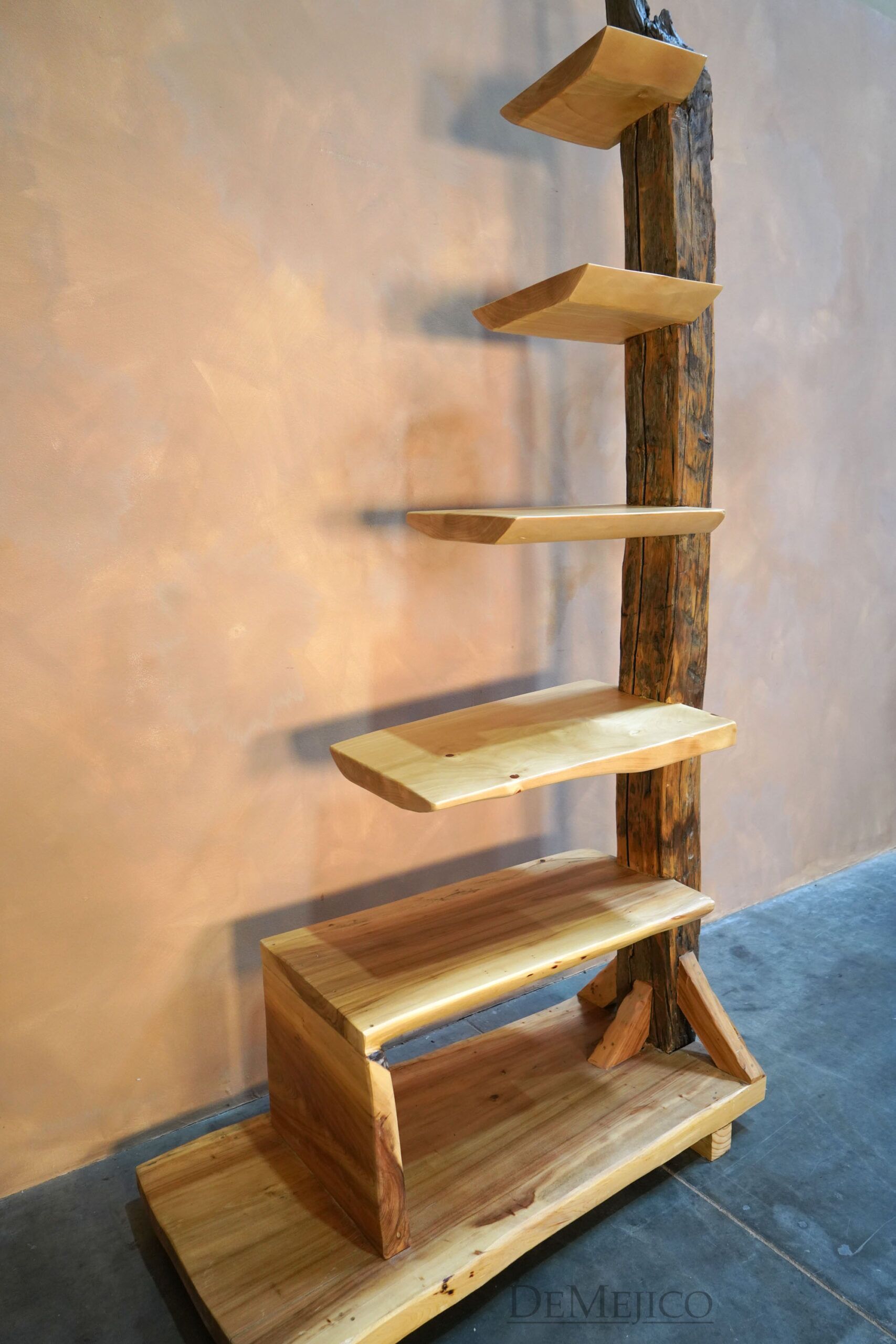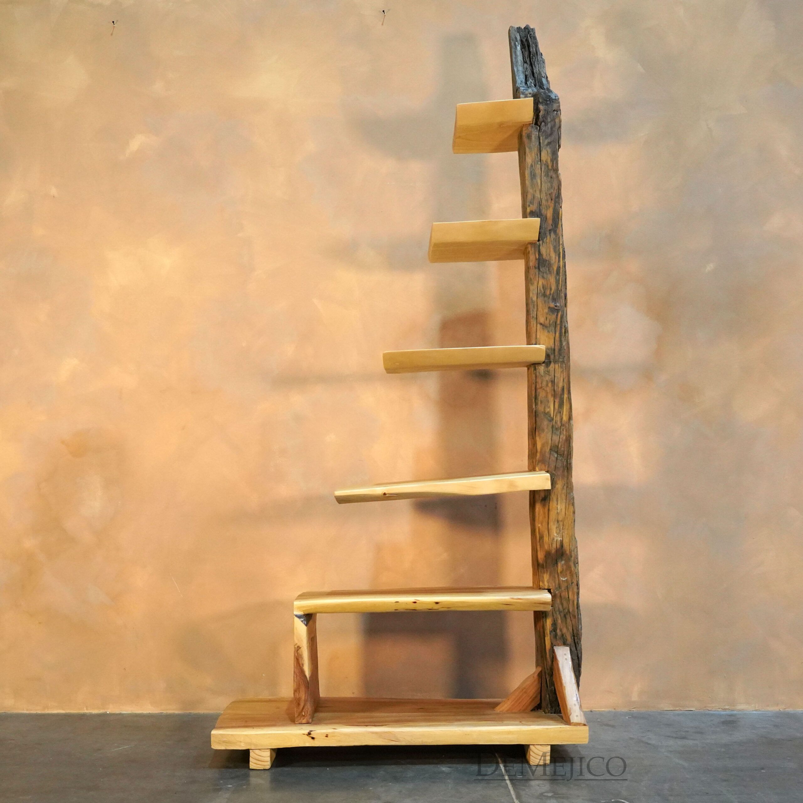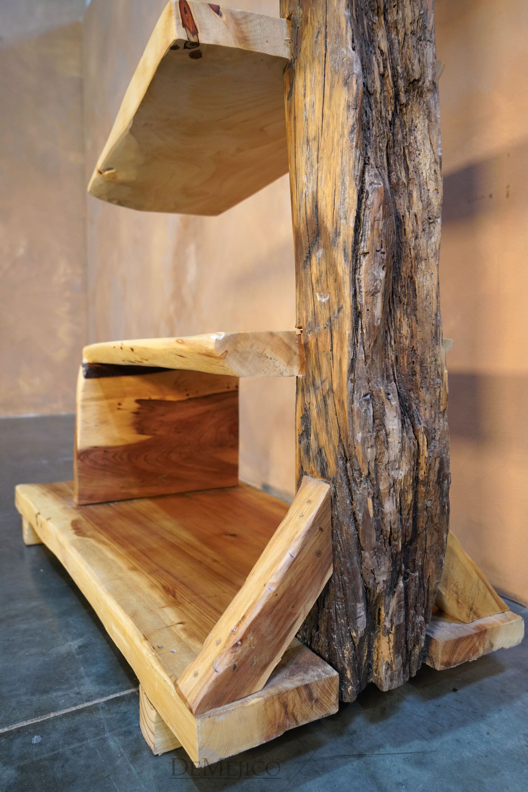 Standing out among the rest, the Live Edge Bookshelf is one of the most unique pieces in our Office Catalog. Completely hand-designed from top to bottom, this rustic bookshelf features a large live edge piece of wood on the right side. Adhered to the live edge wood are six shelves that start smaller at the top and get larger at the bottom, for a great deal of storage space. With natural shapes, knots, and grooves, this bookshelf showcases a very rustic and outdoor, environmental feel. Add the Live Edge Bookshelf to any office or entertainment space for an attention-grabbing element.