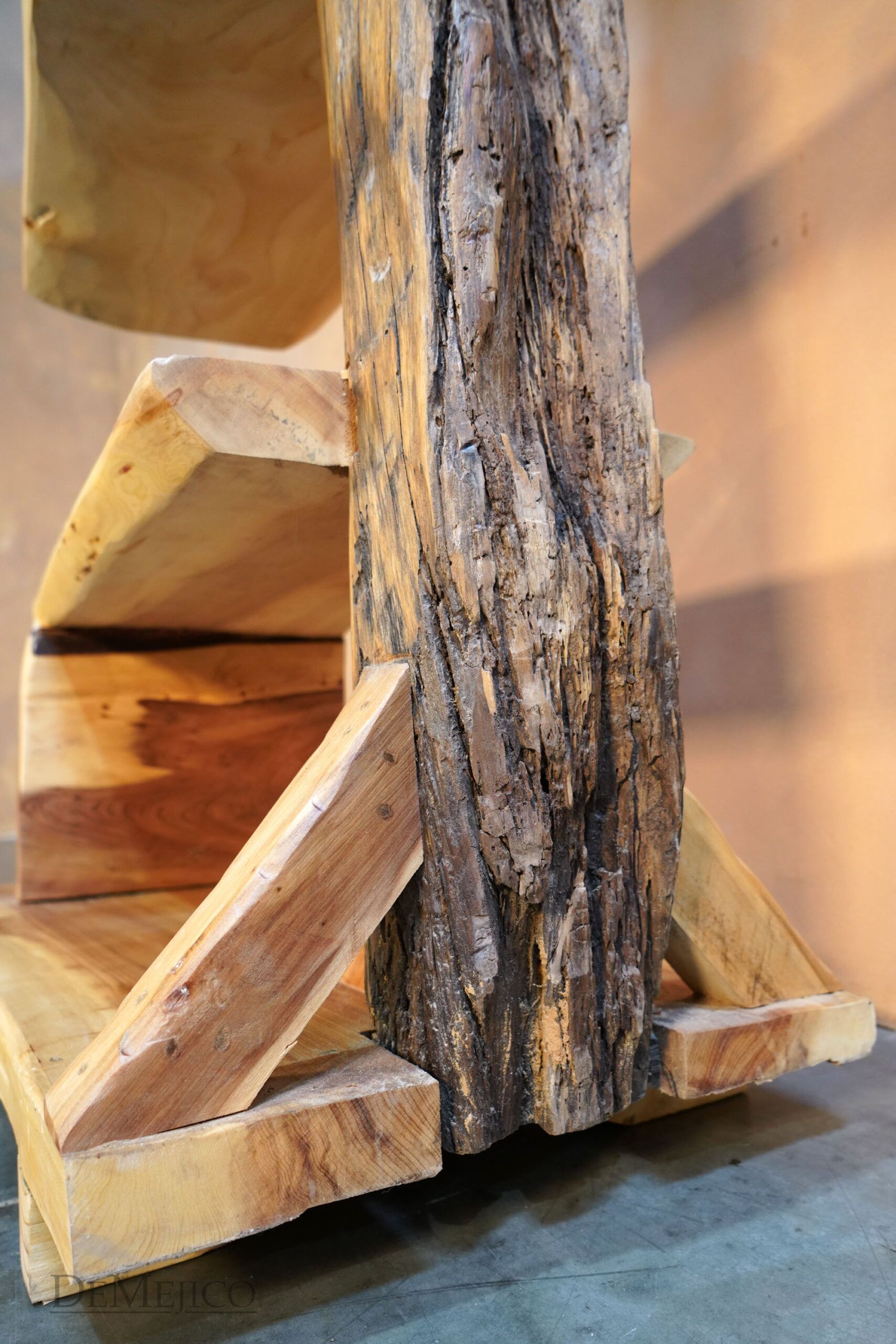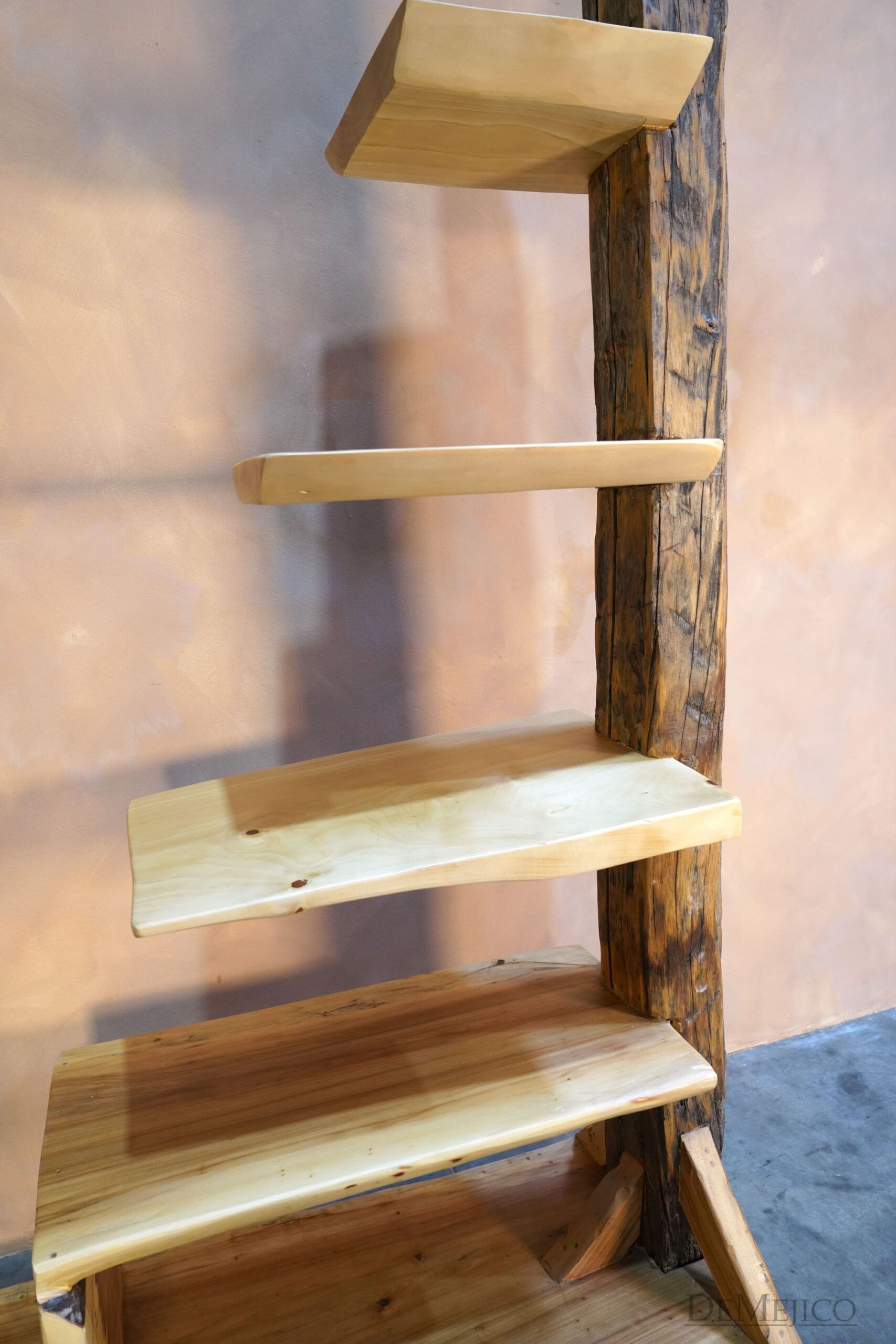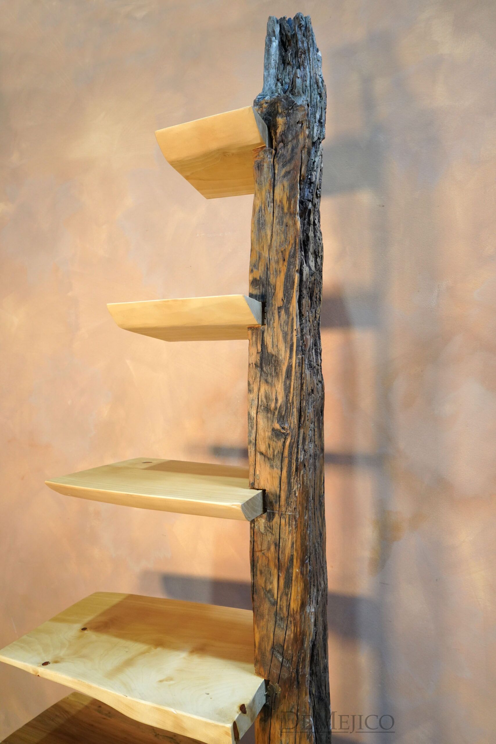 Standing out among the rest, the Live Edge Bookshelf is one of the most unique pieces in our Office Catalog. Completely hand-designed from top to bottom, this rustic bookshelf features a large live edge piece of wood on the right side. Adhered to the live edge wood are six shelves that start smaller at the top and get larger at the bottom, for a great deal of storage space. With natural shapes, knots, and grooves, this bookshelf showcases a very rustic and outdoor, environmental feel. Add the Live Edge Bookshelf to any office or entertainment space for an attention-grabbing element.