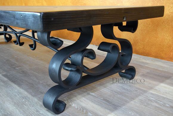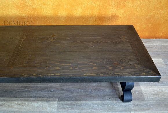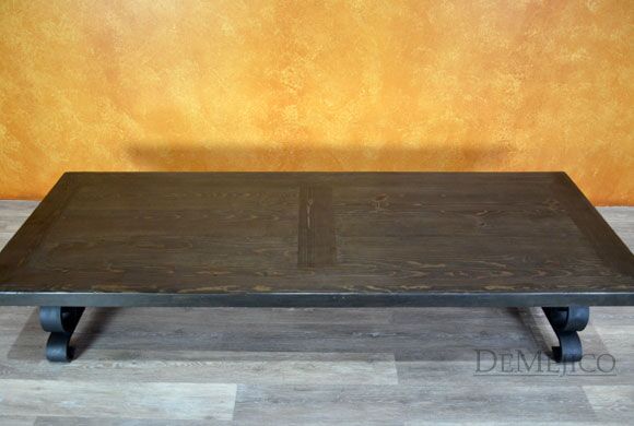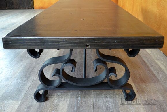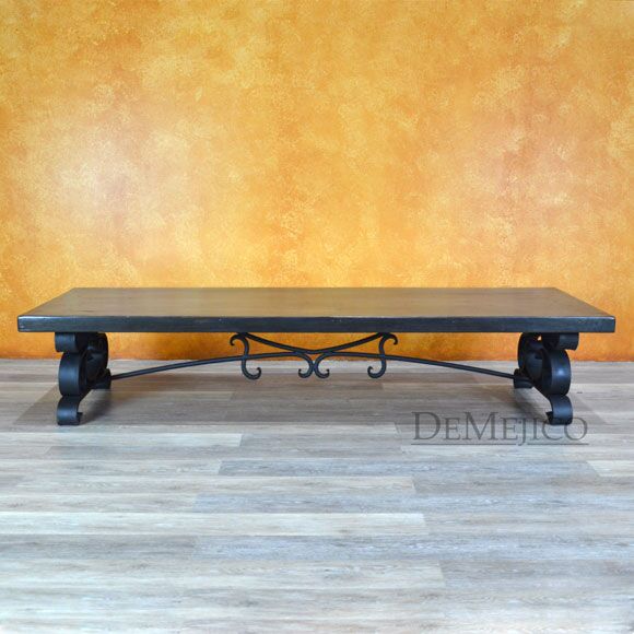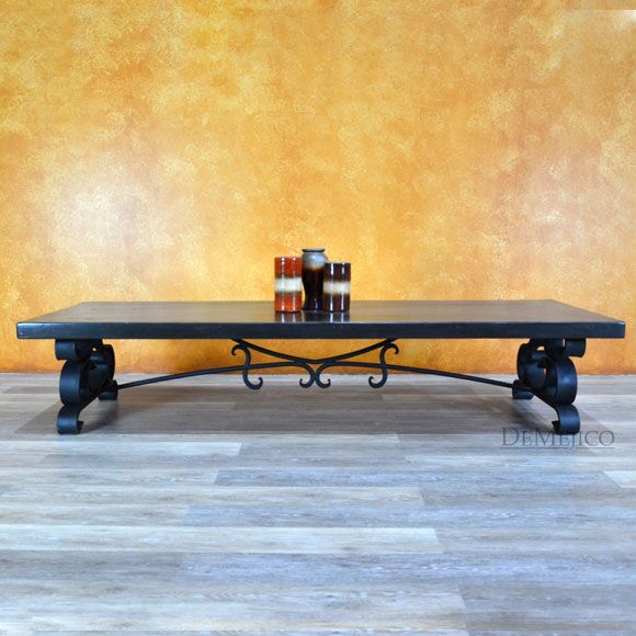 The Long Espanola Coffee Table is a beautiful Spanish coffee table carefully crafted from mesquite wood and features a hand-forged base. A smooth top showcases the unique stretches and imperfections of the wood, while the wrought iron base shows off intricate hand forged detailing. The masculine, rustic top and feminine, delicate curves of the base in the Espanola Coffee Table come together to make a one-of-a-kind wrought iron coffee table. Balancing between the masculine and feminine features, this piece will add a touch of Spanish decor to your living or entertainment space.