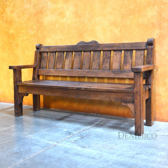 A unique addition to our Living Room Catalog, the Medium Banco del Parque is a Spanish wooden bench that features a classic, Spanish style design. Hand crafted from the highest quality mesquite wood, this bench has been skillfully colored to a rich smooth finish. With subtle curves along the top of the backrest, and to the sides of the armrests, the Medium Banco del Parque’s appearance is both charismatic and charming, as it gives the park style bench a Spanish flair.