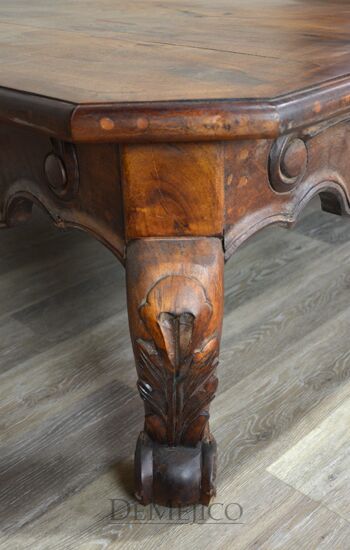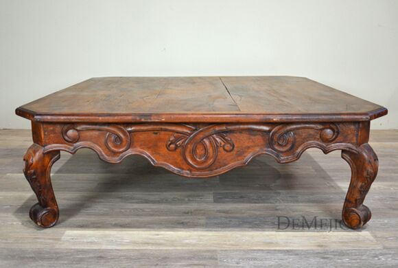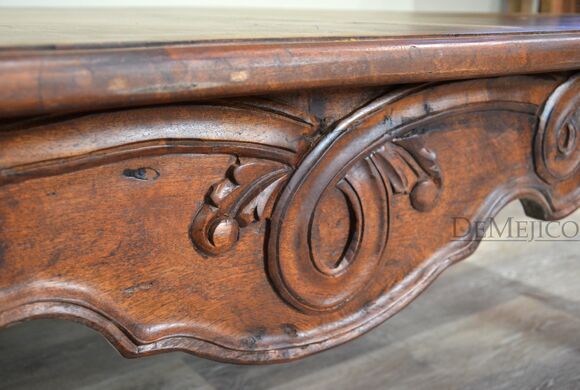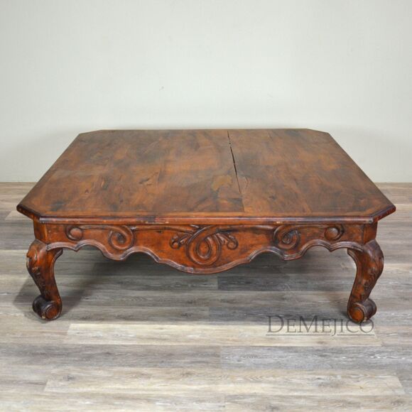 Our Mesa de Centro Conquista is an attention-grabbing, Spanish coffee table, fit for any home, lobby, or entertainment space. Hand crafted from solid mesquite wood, this coffee table features traditional Conquista style carvings on the sides and curved legs. The large top of the Mesa de Centro Conquista showcases the natural knots, stretches, and imperfections of the wood, while providing a great deal of table space. Add this Spanish Colonial Coffee Table for an authentic, Spanish touch.