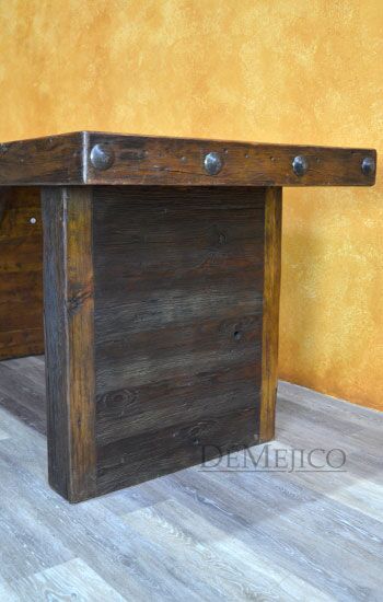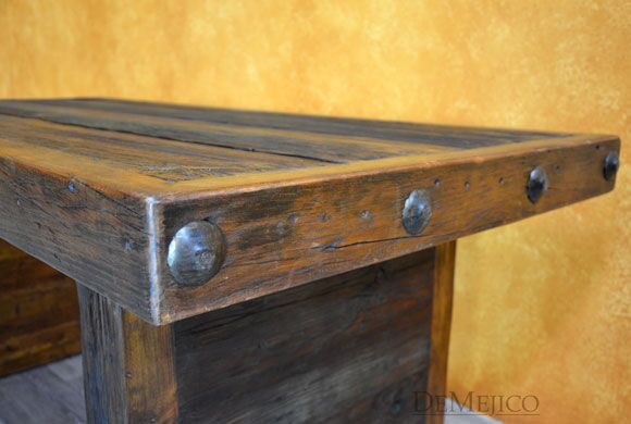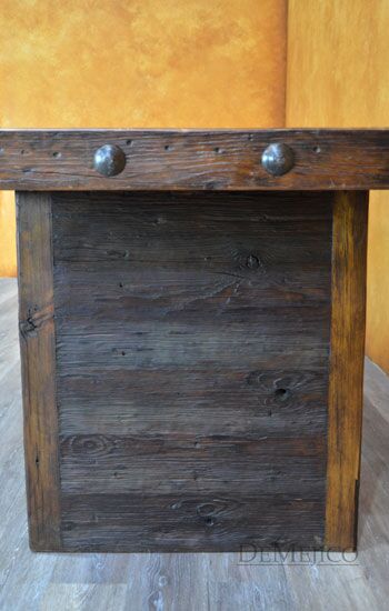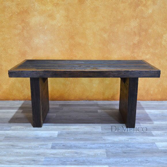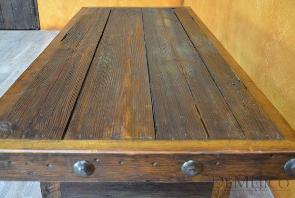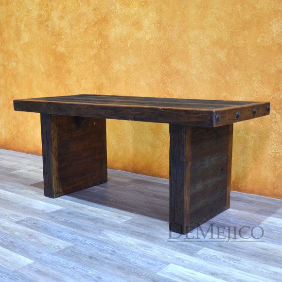 The Mesa Grappa is a classic old wood table with simple Spanish touches. Made from solid old wood, this table beautifully showcases the natural knots, stretches, and wood imperfections throughout the entire piece. With a thick top and thick legs, the Mesa Grappa is finished off with large, hand pounded iron clavos along the two shorter edges. Giving off a rustic feel, this piece can be used as a rustic dining table or even as a rustic desk in your office space.