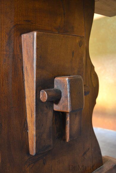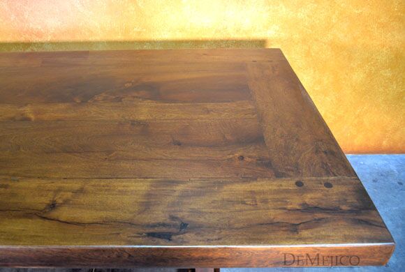 The Mesa Hacienda Dining Table, featured in our Dining Catalog, is a classic Spanish style dining table. Made from solid mesquite wood, this table features a smooth top, complimented by a trestle base with carefully carved legs. Finished in a dark stain, this table will bring in an elegant feel to any dining space. Shown here, this table is a 9ft version, but can be made to any dimensions.