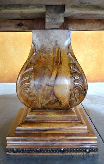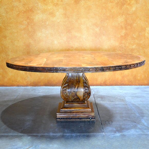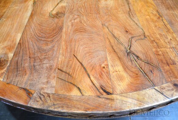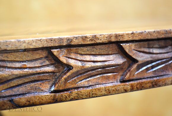 Looking for a classic round Spanish dining table? The Mesa Hoja Clara is just that! Built from solid aged mesquite wood, this table features beautiful, attention-grabbing hand carved detailing around its round top edge and teardrop shaped base. Finishing off this carved dining table, a strip of woven wire and hand pounded iron clavos have been placed along the bottom of the base. Tying together both feminine and masculine details, the Mesa Hoja Clara is the perfect kitchen table for bringing an elegant Spanish touch to your home.