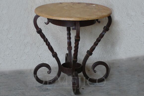 A Spanish iron end table featured in our Living Room Catalog, the Mesa Lateral Retorcida is a small end table with a unique look. A smooth and round, polished travertine stone tops off this end table, while a simple twisted and scrolled iron serves as the base. This contemporary take on a traditional Spanish end table design will surely impress your guests, while still functioning in your smaller space.