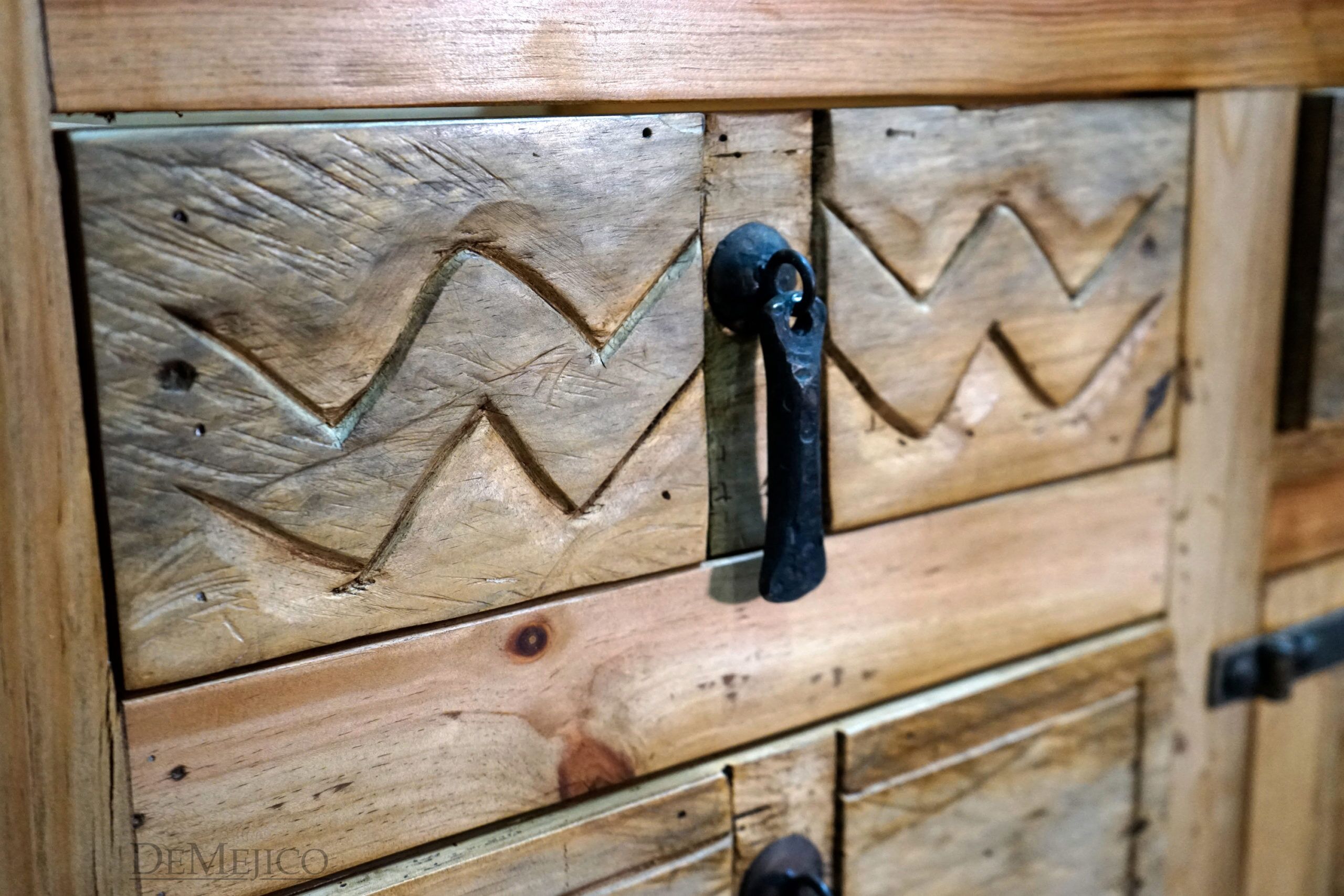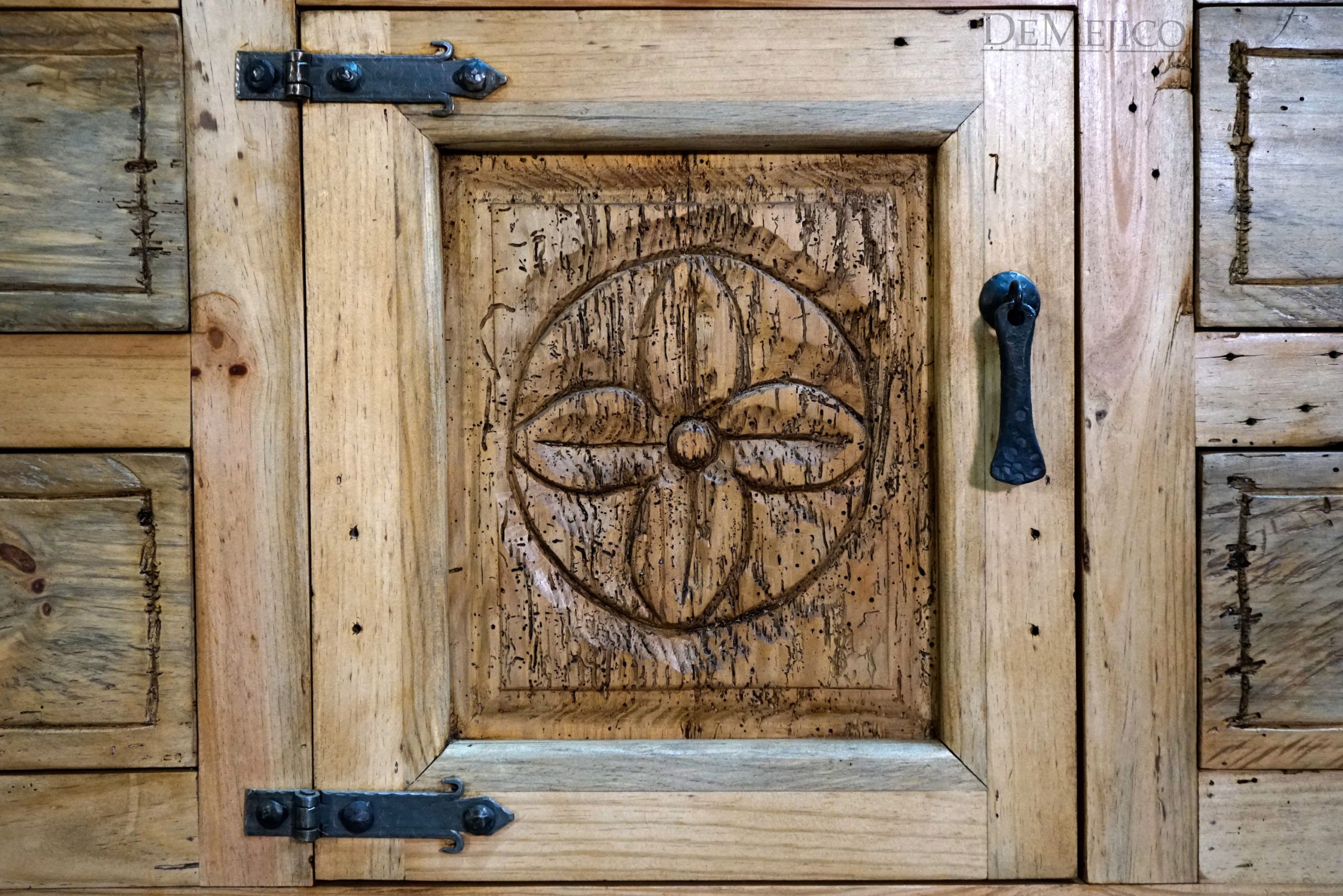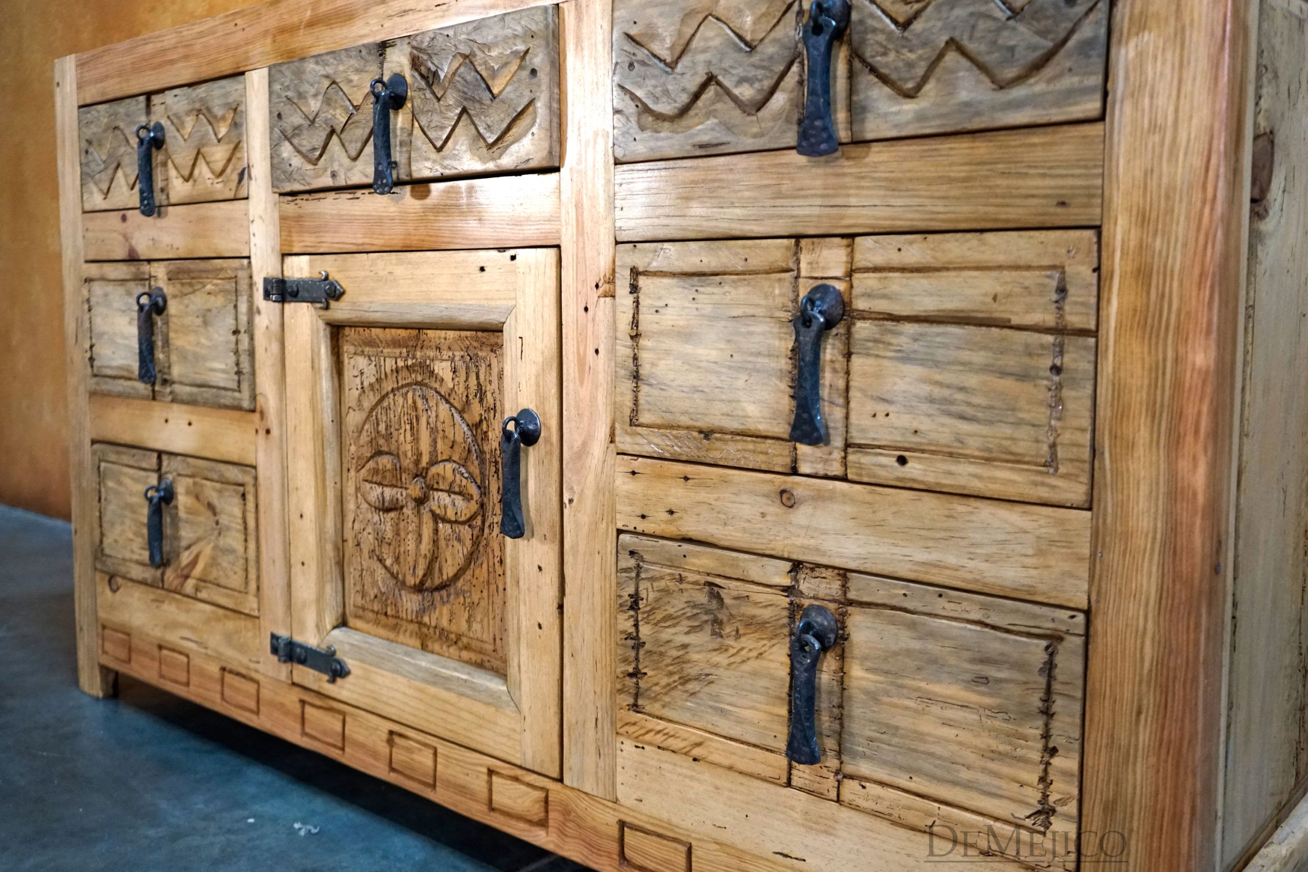 Newly designed, the Mirasol Vanity is a beautiful Spanish Colonial Vanity made from solid old wood. Grabbing your attention, the drawers and single cabinet feature hand carved Spanish Colonial designs, in our Mirasol style. Accenting these designs are raised panels and forged iron hardware, adding to that classic Spanish look. Finished with raised legs and a stain to enhance the wood and features, this piece is set to impress. Add the Mirasol Vanity to the already Spanish style of your home, or, just give your bathroom a touch of Spanish flair.