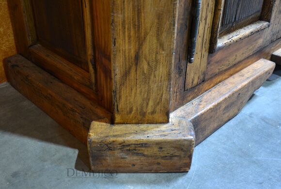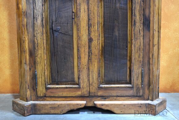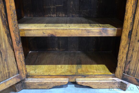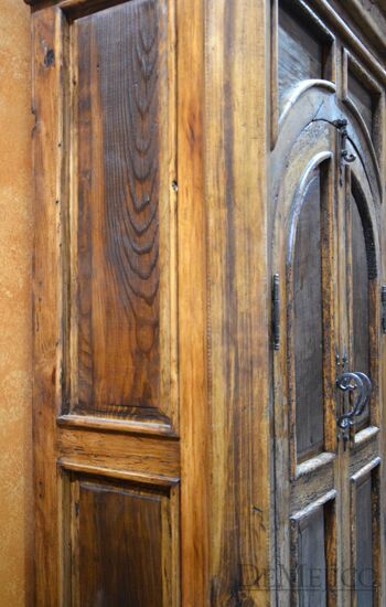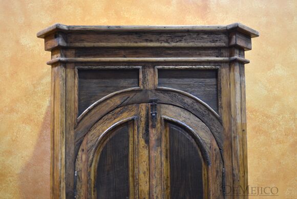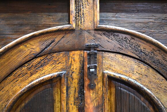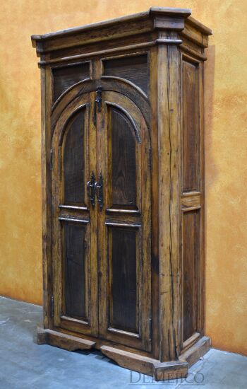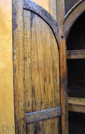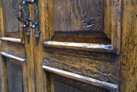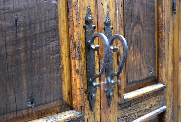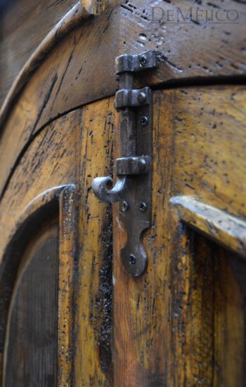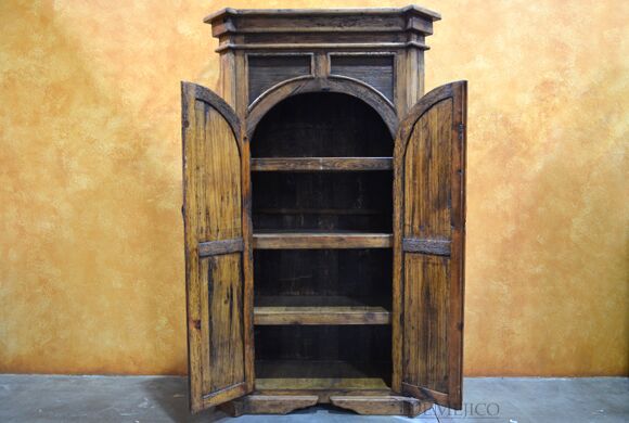 The Old World Armoire is a newly designed piece, featured in our Living Room Catalog. Made from solid old wood, this rustic armoire beautifully showcases the wood’s natural stretches and knots, throughout the entire piece. Under its square top design, this armoire shows off arched top doors and raised paneling, enhancing the Old World Style. With four shelves on the inside, this large Spanish armoire has an ideal amount of storage for any medium to large sized space. To finish off this piece, we have added hand forged, wrought iron handles and latches to give it an authentic Spanish feel.