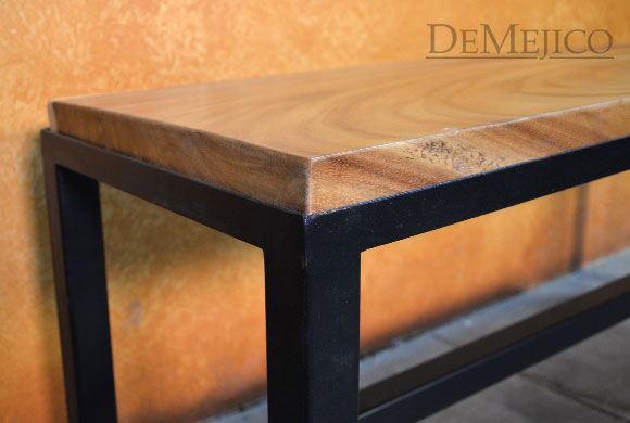 The Playa Bench is a newly styled rustic bench added to our Living Room Catalog. This bench features a single block of smooth parota wood as the seat, that beautifully shows off the natural grains and movements. For a modern look, the Playa Bench shows off iron legs and a uniquely shaped trestle, finished in a matte black. With a very rustic modern feel, the Playa Bench can serve as a table bench or even as an accent bench, indoors or under a covered patio outdoors. This modern accent bench is an attention grabbing piece that is truly one-of-a-kind.