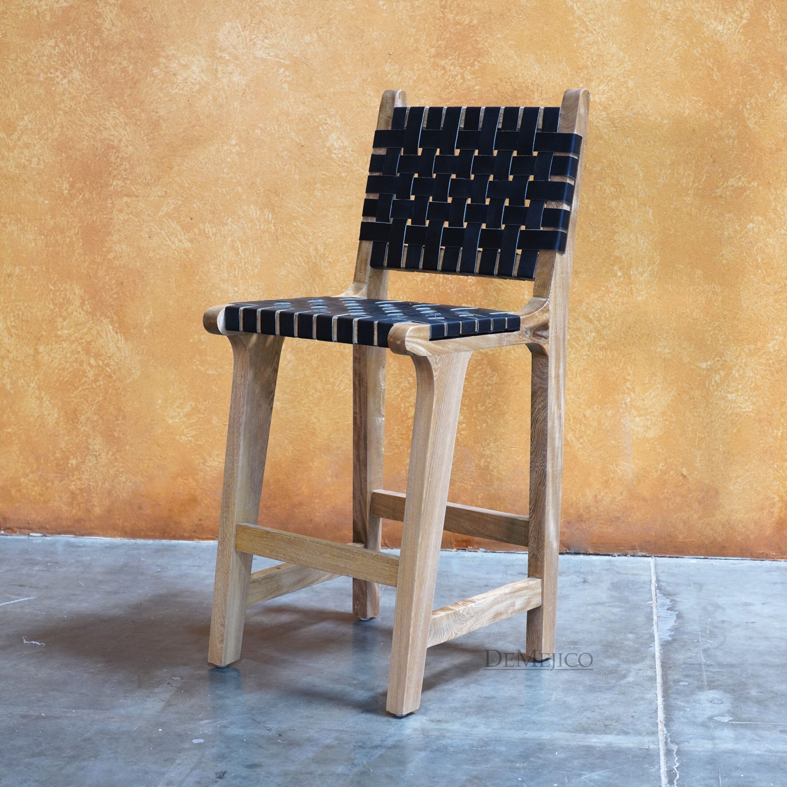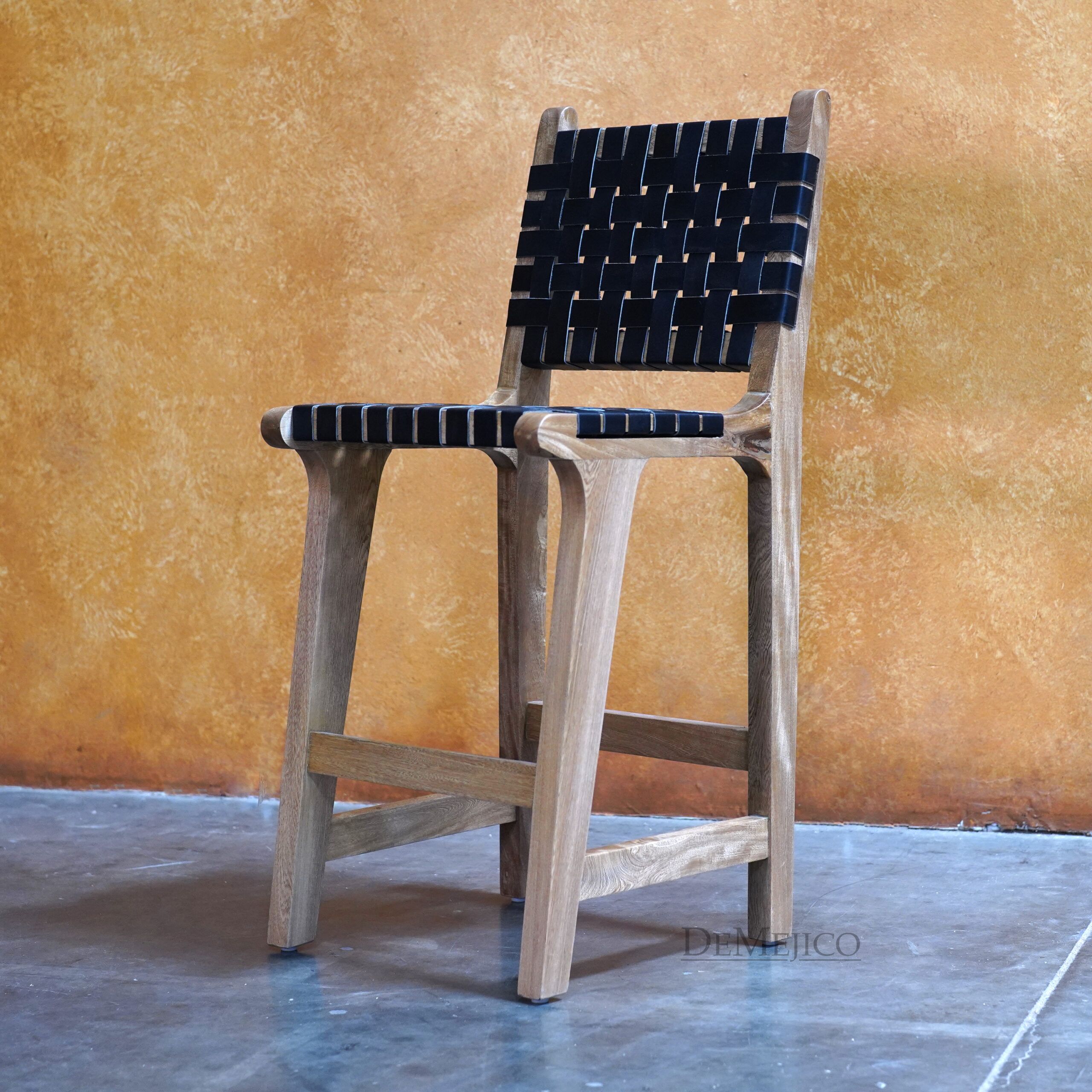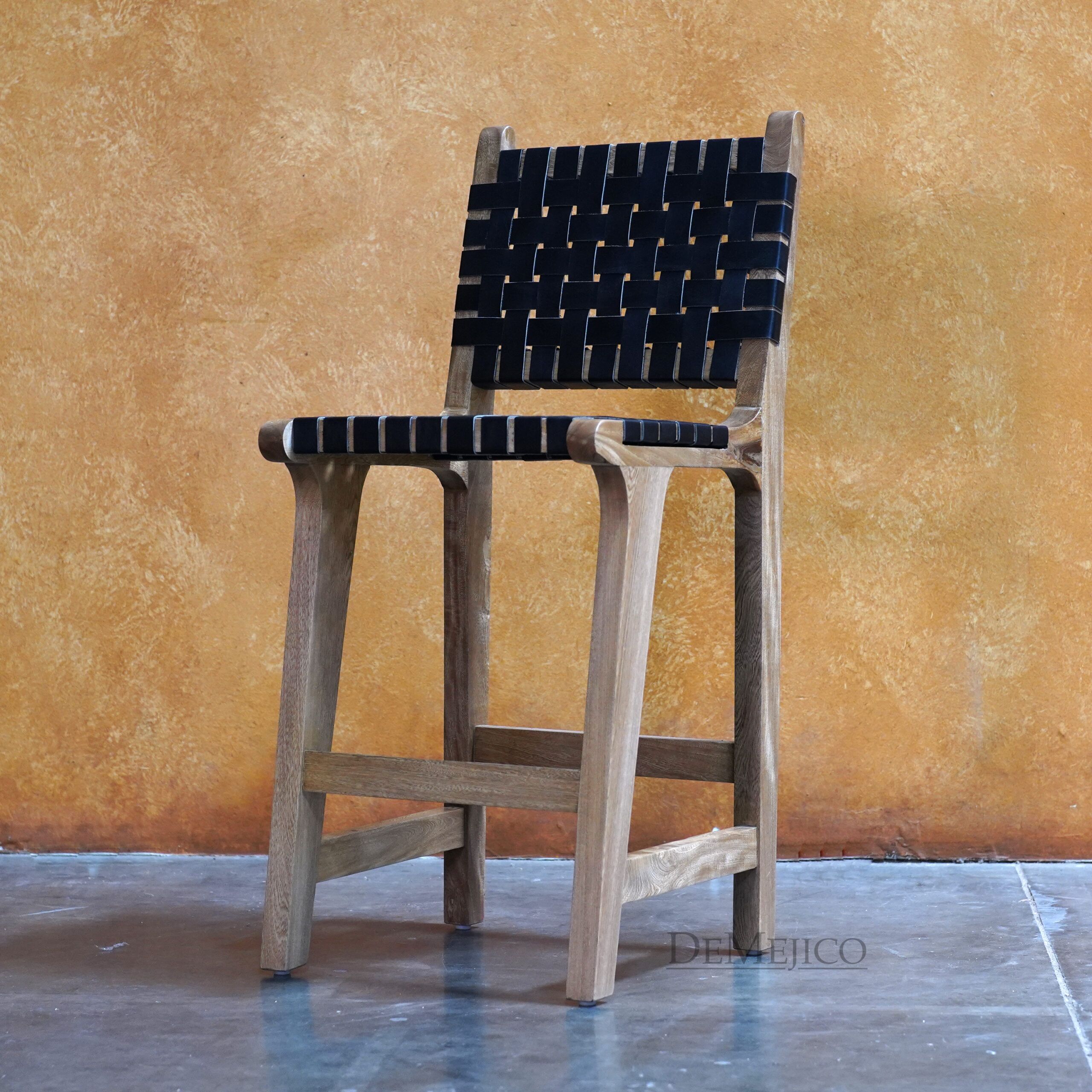 A unique addition to our Bar Catalog, the Playa Counter Stool stands out among the rest as a modern Spanish counter stool with a sleek and modern design style. Hand crafted from solid parota wood and featuring a smooth hand dyed leather in a woven layout, these Spanish chairs are both stylish and comfortable. With bold lines and a smooth finish, add this modern barstool to any space for a unique look, with authentic handcrafted quality.