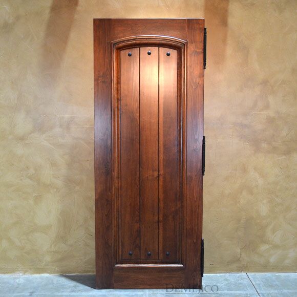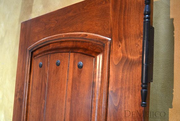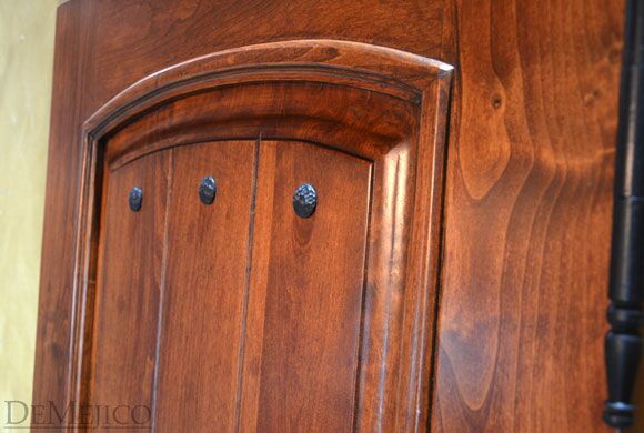 As wooden interior doors, the Puerta Armida is a simple yet classic door, made from solid Knotty Alder. With raised edges, this door features a single slim panel with a subtle Spanish arch. Accented by protruding mouldings on the top and bottom, and complete with hand forged iron clavos, the Puerta Armida beautifully blends both Classic and Spanish styles.