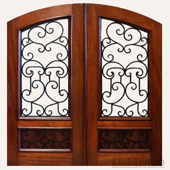 Classically designed double exterior doors, the Puerta Florentino double doors are shown in a beautiful, Spanish arch top design. Built from solid Knotty Alder wood, the frame and bottom panels of these doors enhance the natural stretches and movements of the wood without taking away from the stunning wrought iron. Able to tie together any Spanish home or restaurant, the Puerta Florentino can be customized to any dimensions.