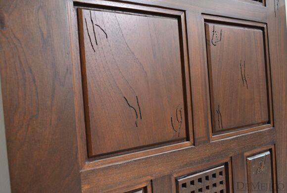 A unique addition to our Door Catalog, the Puerta Santa Barbara is a craftsman door, with a modern touch. Made from solid knotty alder wood, this door features a multi-panel layout design, with panels in different sizes, really giving it that modern feel. The center panel features a grill-like cutout design, while the surrounding panels are each accented with subtle etched out carvings. Add the Puerta Santa Barbara to any Traditional or Modern style home for an eye-catching look.