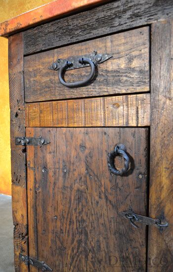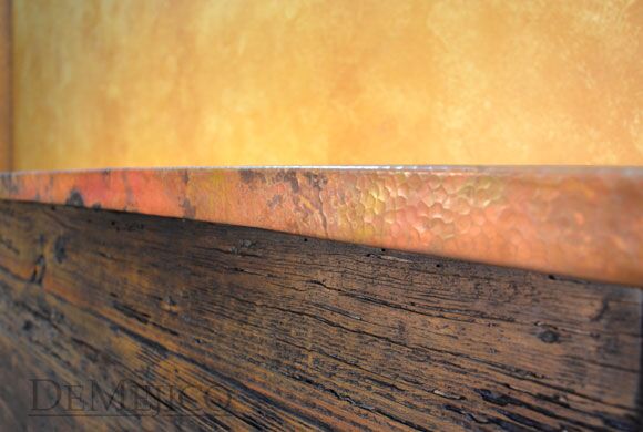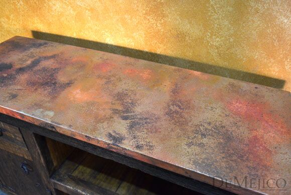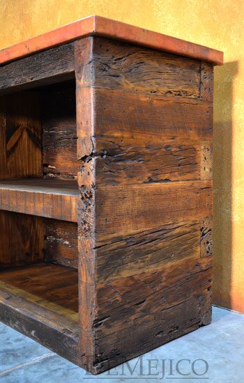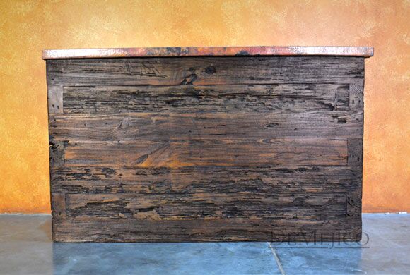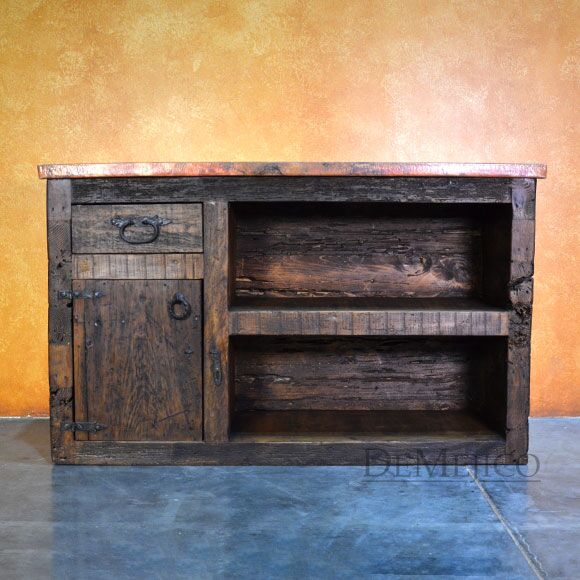 The Rustic Copper Vanity is an Original Spanish Vanity, made from solid wood and a copper top. This authentic vanity features a hand pounded copper top, with rustic raised planks on the front and sides, bringing a plethora of knots, stretches, and imperfections that have formed throughout its years. The main functionality of this rustic vanity shows off two large, open shelving spaces for storage, along with a single drawer and single cabinet, for even more storage. Add the Rustic Copper Vanity to any bathroom space for an attention-grabbing addition, with a touch of Spanish style.