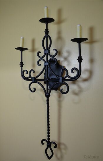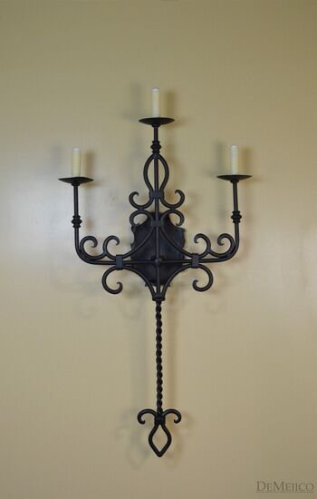 Featured in our Lighting Catalog, the San Miguel Sconce is a beautiful scrolled wall sconce featuring three imitation candles with dripping wax. With a weathered black finish, this fixture is given a royal Spanish feel through its classically scrolled wrought iron that flows into a twisted base. Light up the space and grab your guest’s attention by adding these accent fixtures to any Spanish style interior space in your home or restaurant.