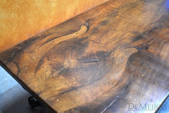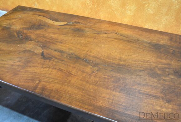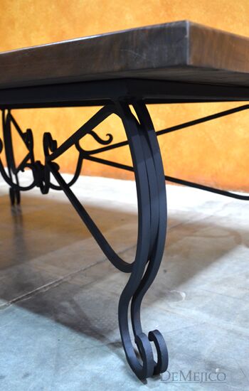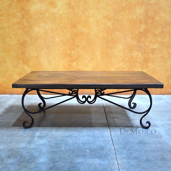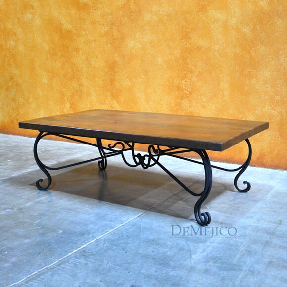 The Santa Monica Coffee Table is a beautiful wrought iron coffee table carefully crafted from solid mesquite wood, featuring a hand-forged base. A smooth top laid in a panel design, showcases the unique stretches and imperfections of the wood, while being complimented by the smooth, sealed finish. The delicate curves of the base in the Santa Monica Coffee Table bring a soft and feminine touch, creating a one-of-a-kind wrought iron coffee table. Add this elegant piece to your living or entertainment space, for a touch of Spanish decor.