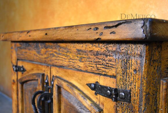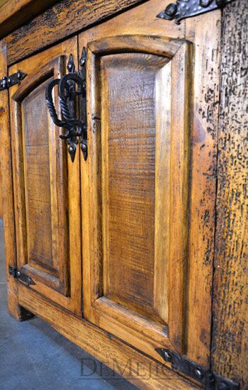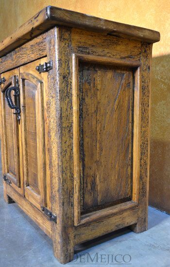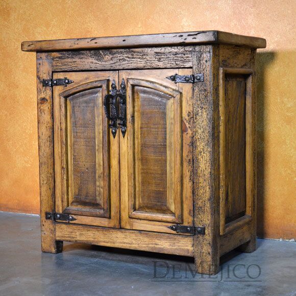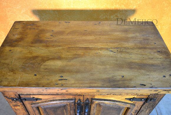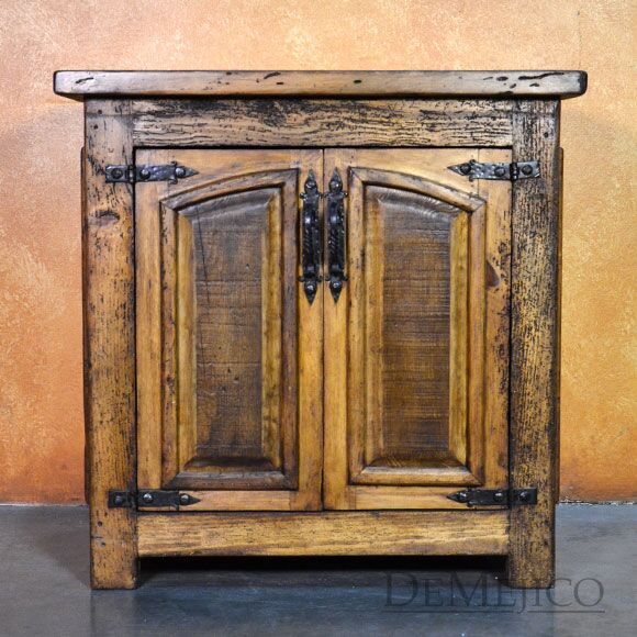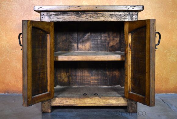 The Santos Nightstand is a brand new addition to our Bedroom Catalog. Carefully crafted from old wood, this Spanish nightstand features naturally imperfect surfaces that showcase its natural stretches and knots. Catching your eye, the double door cabinets on this nightstand feature two raised panels with subtle Spanish arches. Accented by hand forged iron pulls and hardware, these doors open up to a great deal of storage space for all of your bedside needs. Finished off with raised paneling on the sides, the Santos Nightstand is a perfect addition to any Spanish style bedroom space.