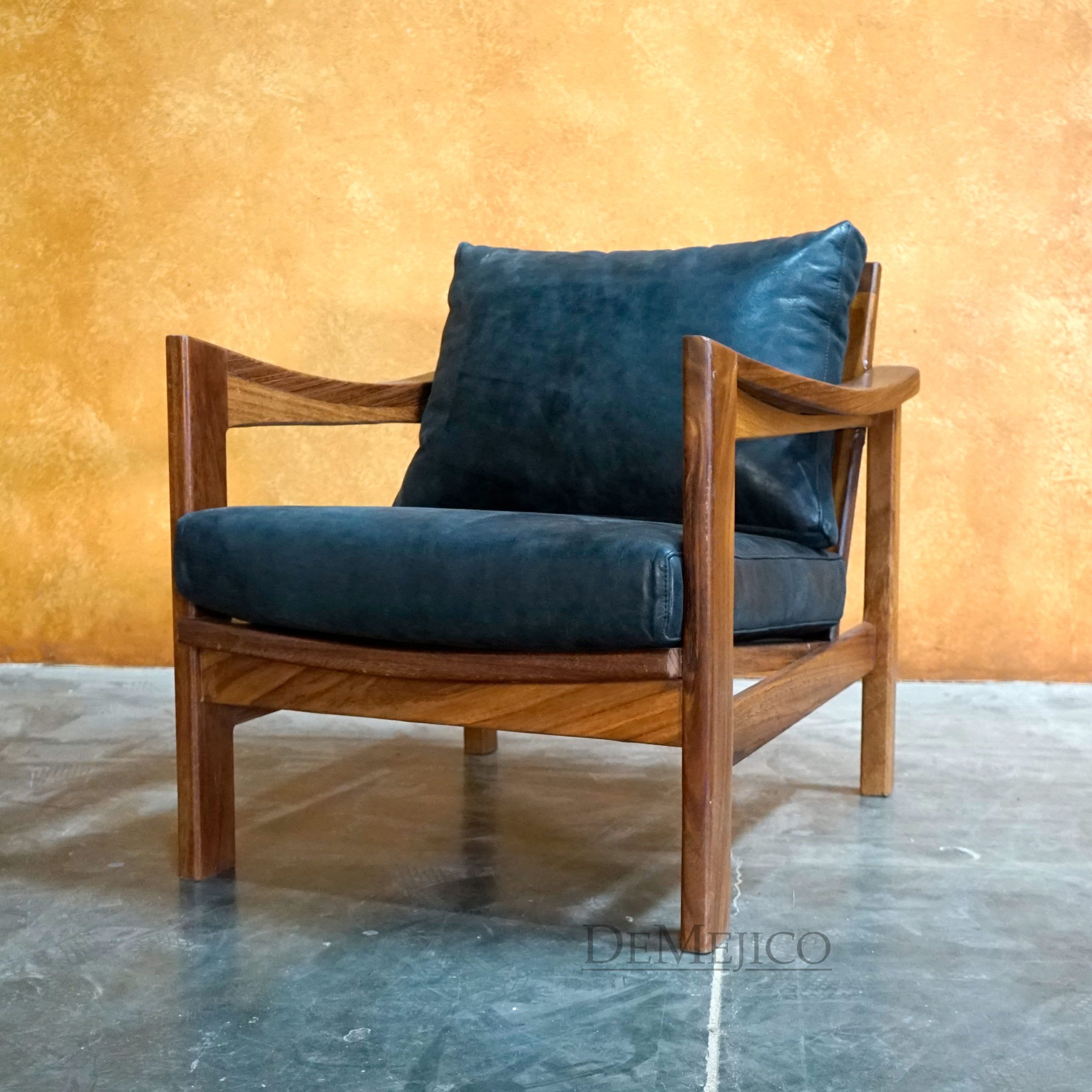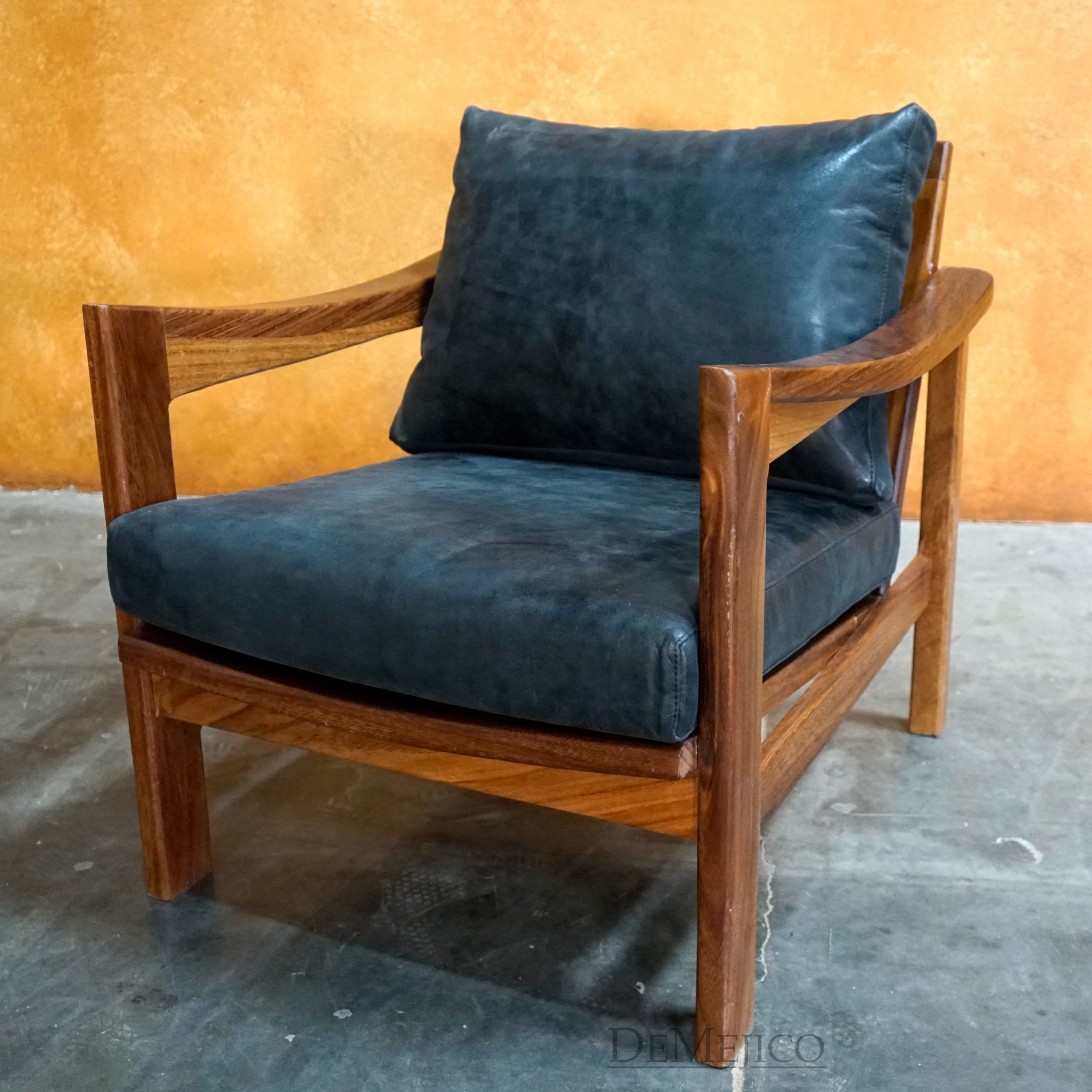A unique addition to our Dining Room Catalog, the Silla Escondido Negro stands out among the rest as a modern Spanish chair. Handcrafted from solid parota wood, this chair features a more sleek and modern design style. With bold lines, slight curves, and a smooth finish, the Silla Escondido Negro is finished off with a soft cushioned seat and backrest. Add this Modern Chair to any space for a unique look, with authentic handcrafted quality.