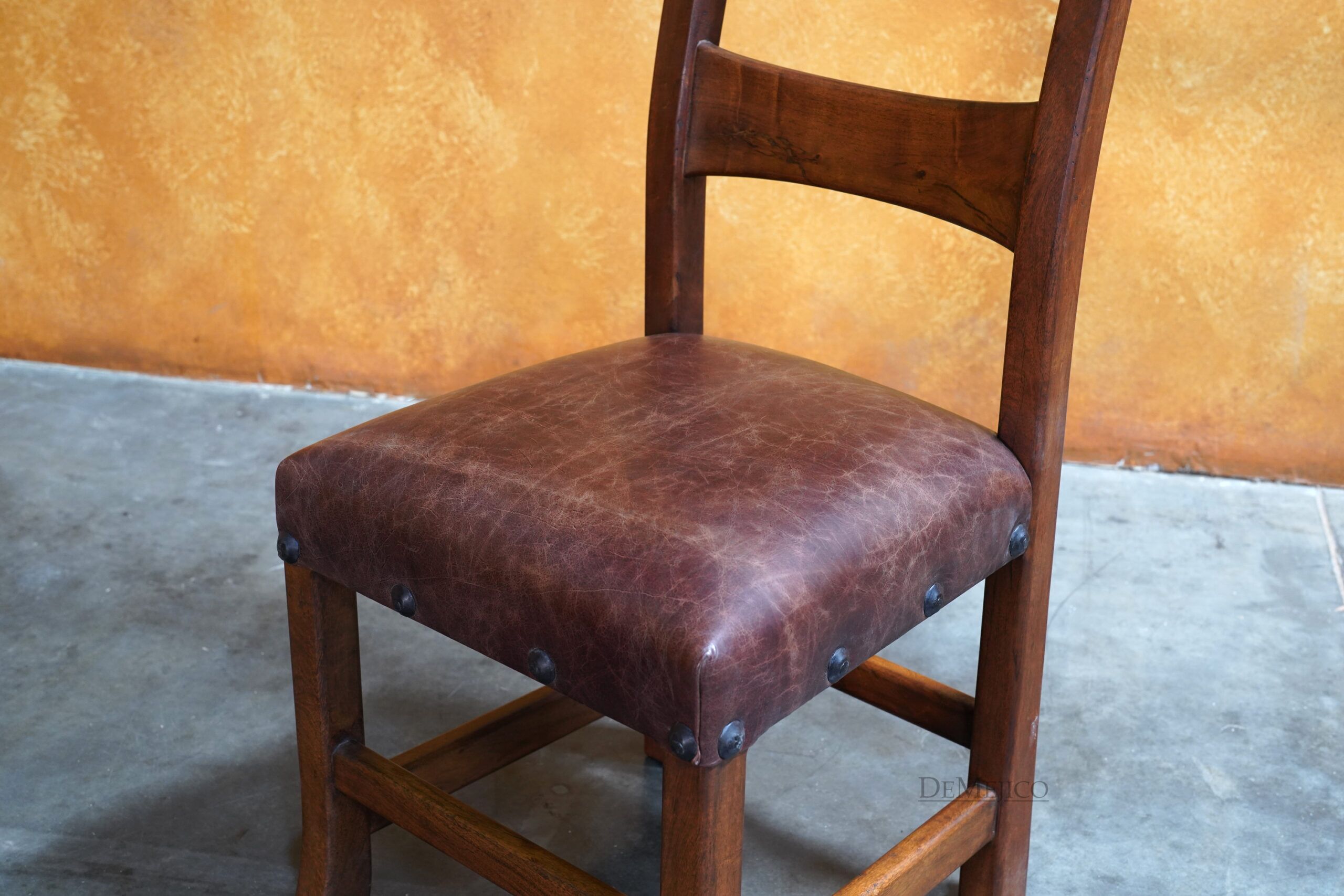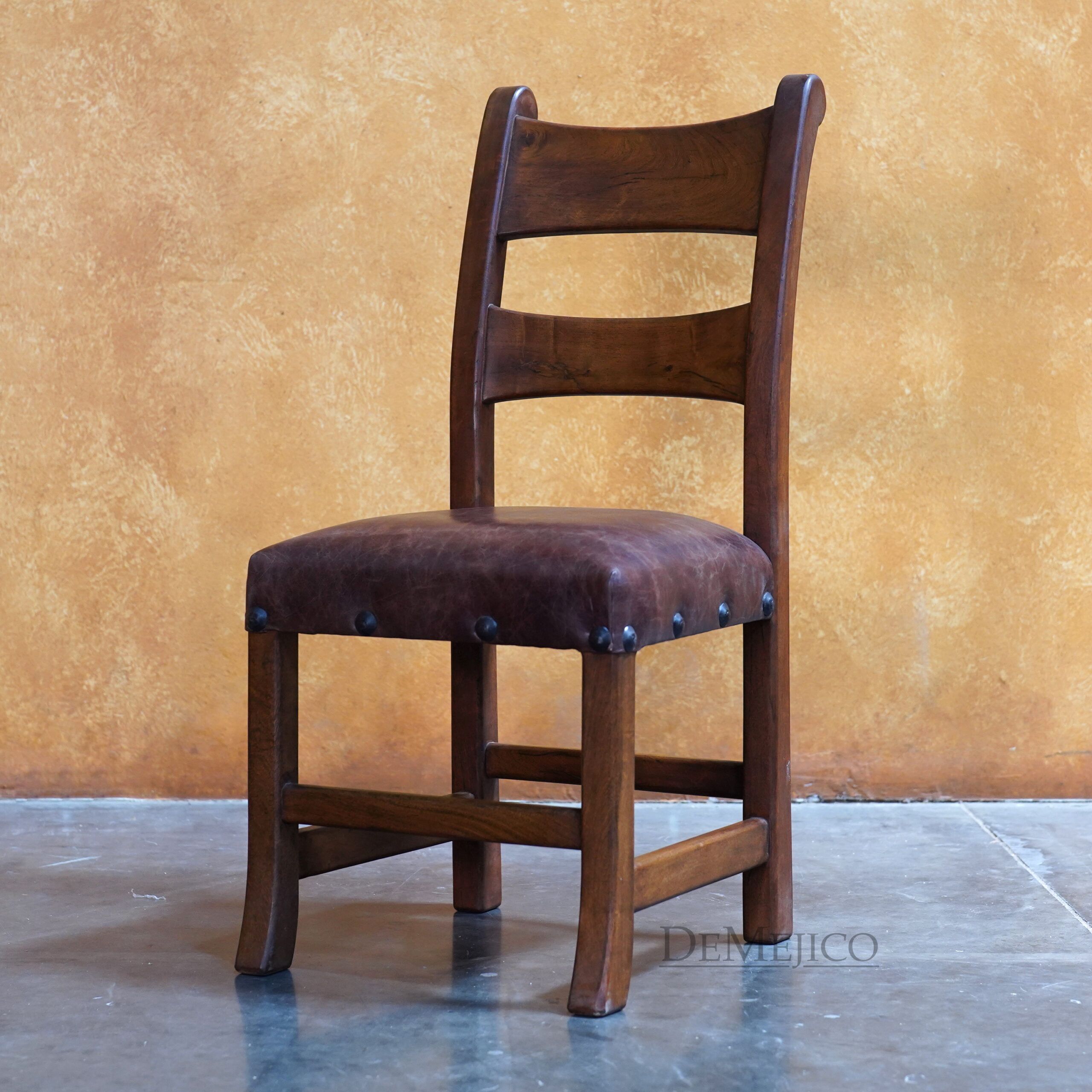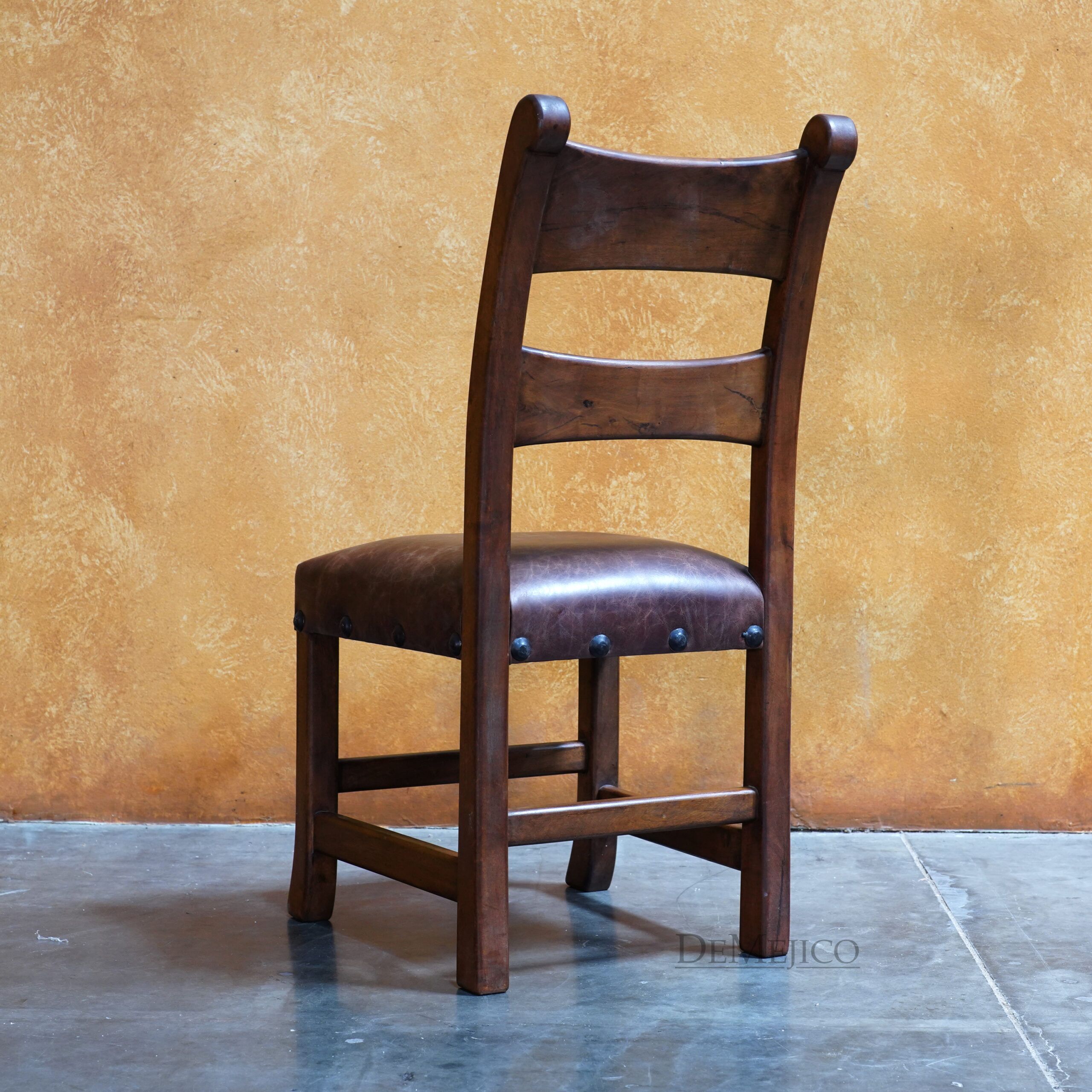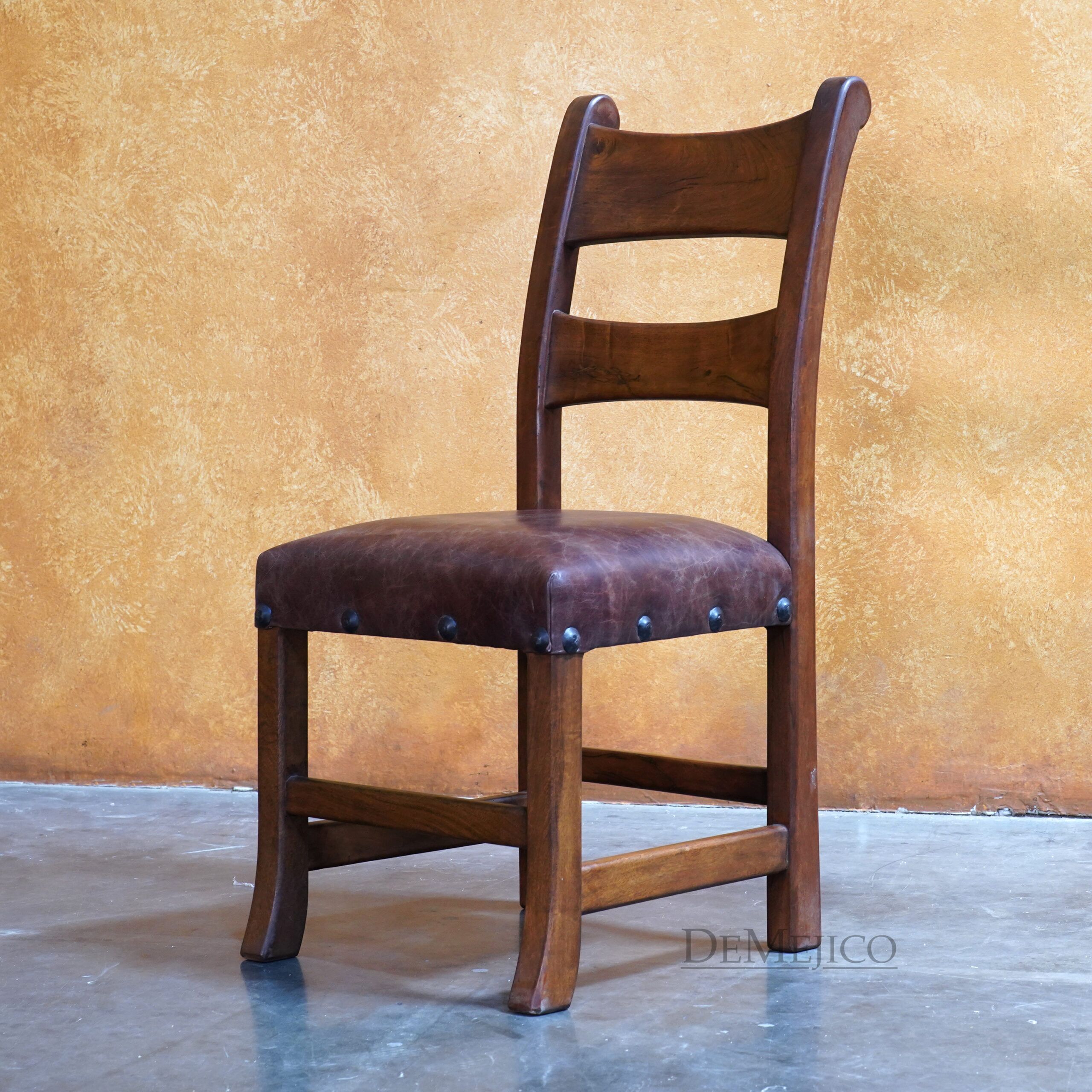 The Silla Hacienda Spanish Ladder Back Chair is a beautiful hacienda style chair featuring a Spanish ladder back design and full wrapped upholstery. The comfortable chair, hand crafted from mesquite wood, is perfect for restaurants and long dining.