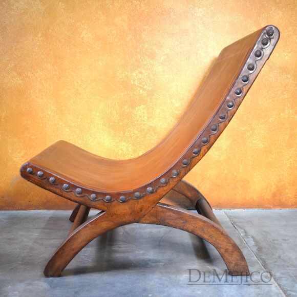 The Silla Nayarit is a unique addition to our Living Room Catalog. Hand crafted from solid mesquite wood and featuring a smooth hand dyed leather, these Spanish chairs are both stylish and comfortable. Paying close attention to detail when crafting this leather lounge bench, there are small features such as the scalloped edge leather along the sides, that add small, but beautiful touches. Accented by hand pounded iron clavos, the Silla Nayarit is the perfect Spanish touch to any living room space.