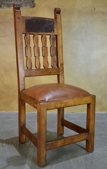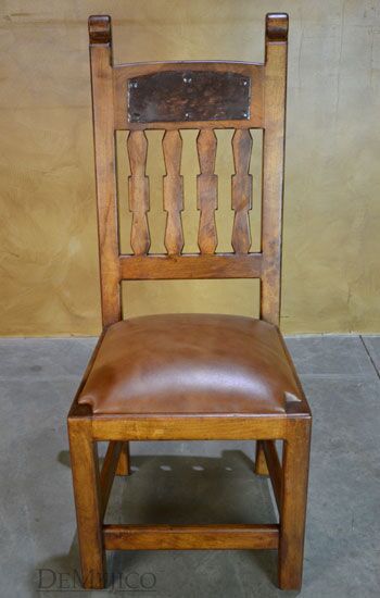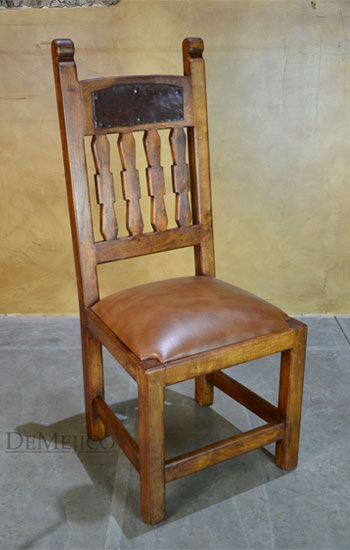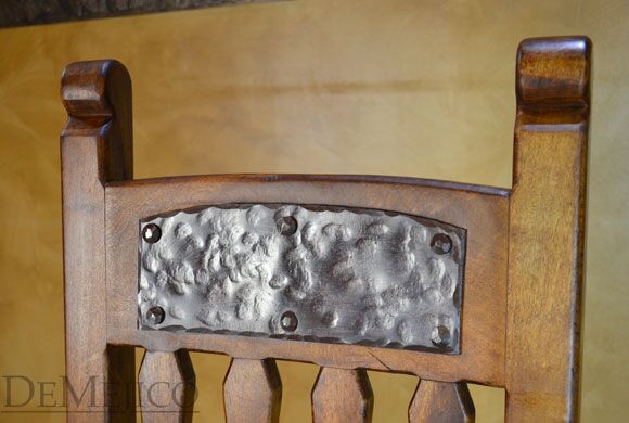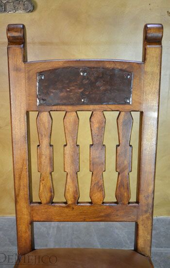 Made from solid mesquite wood, the Silla San Felipe Southwest chair features smooth Spanish lines with a unique bar backing. Finishing this simple Spanish design, there is a hand-pounded iron plated back.