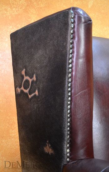 Featured in our Living Room Catalog, the Sofa Cuernavaca is a beautiful Spanish Armchair with Footstool that will bring both style and comfort into your living or entertainment space. Upholstered with soft to the touch, genuine leather and cowhide, this single seater lounge chair has bold design with its thick backrest and large arms. The beauty is in the details with the Sofa Cuernavaca, as the genuine cowhide features the branded markings, while small hand pounded studs adorn tie in the Spanish feel. Raised up on small legs, and with a matching footstool for extra comfort, the Sofa Cuernavaca is the perfect Spanish lounge chair for your Spanish living room, rustic entertainment space, or even mancave!