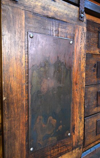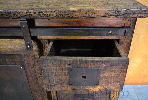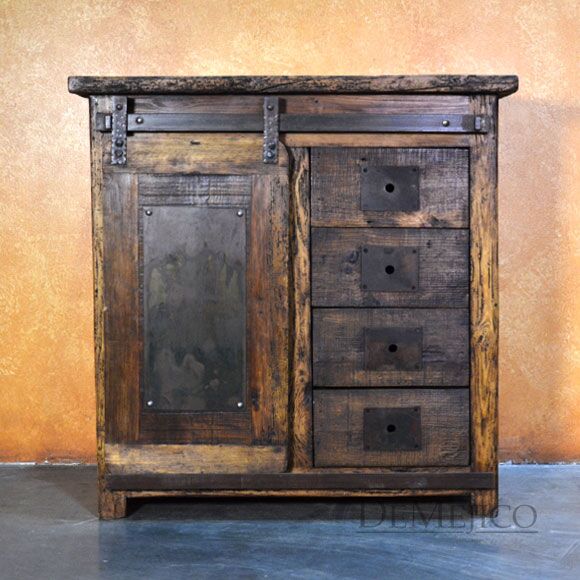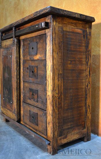 A unique addition to our Bedroom Catalog, the Troje Dresser Especial is a classically styled rustic dresser with farmhouse style and Old World influences. Made from solid old wood, this dresser shows off natural knots and imperfections throughout. For storage and display, this dresser features something very unique to our authentic Spanish style; a small barn door that slides from left to right. Behind this barn door is a hidden (or non-hidden) space for storage/display. Along with four drawers, this farmhouse dresser provides a great deal of storage space. Complete with hand forged iron accents, the Troje Dresser is sure to bring a rustic style to any space.
