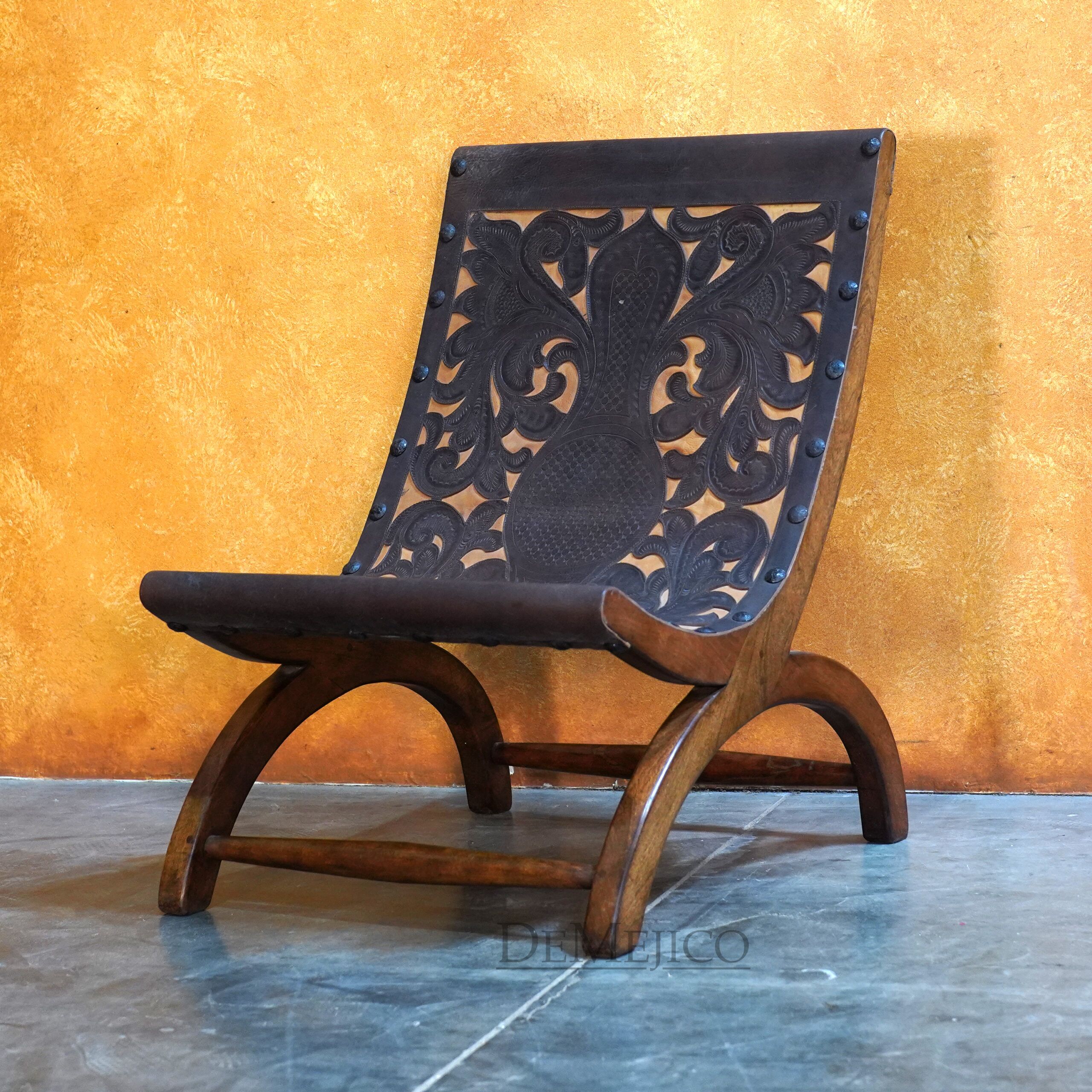 Similar to the Vaquero Silla Nayarit, the Silla Nayarit Obscuro shows off the same style, but with a single toned dark leather backrest, and the Silla Nayarit Blanco shows off the same style, but with a single toned light leather backrest.